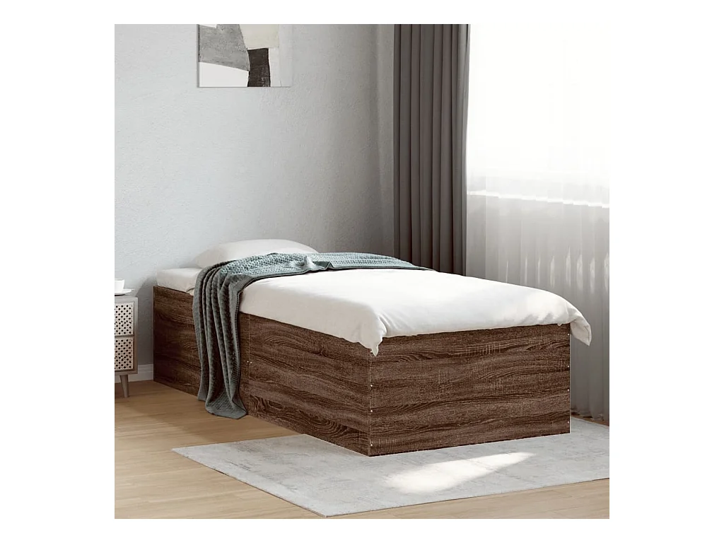 Lit simple chêne marron 90x200 cm bois d'ingénierie FR84285