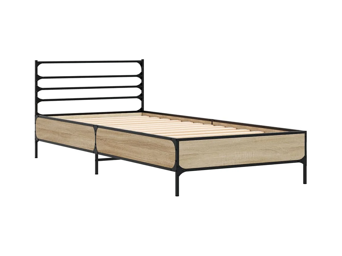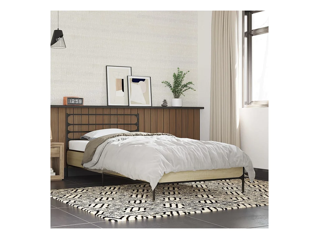 Lit simple chêne sonoma 100x200 cm bois d'ingénierie et métal FR43560