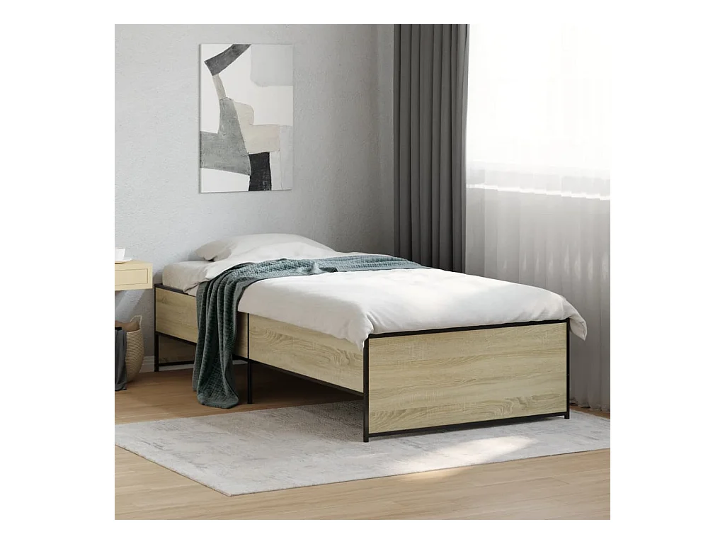 Lit simple chêne sonoma 75x190 cm bois d'ingénierie et métal FR55333