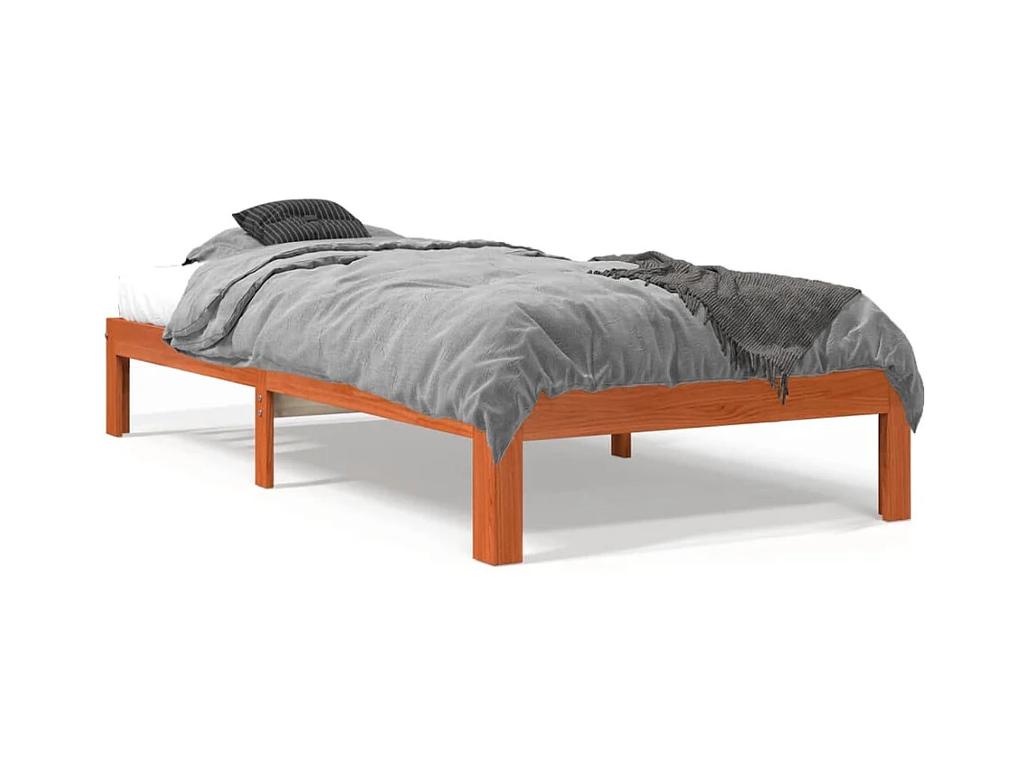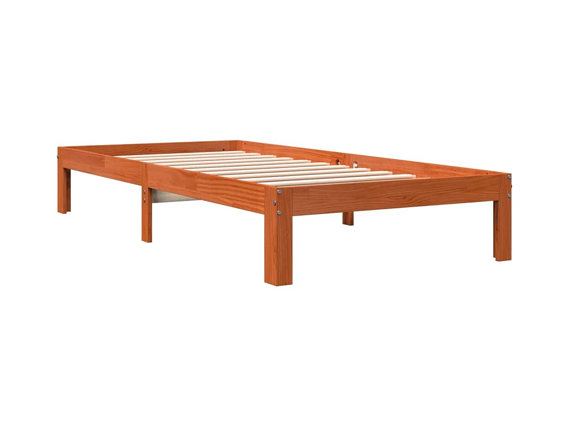 Lit simple cire marron 90x190 cm bois de pin massif FR69066