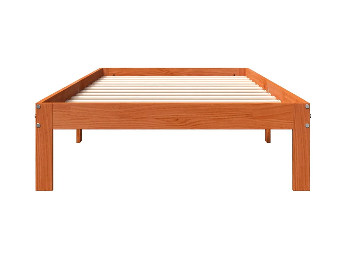 Lit simple cire marron 90x190 cm bois de pin massif FR20747