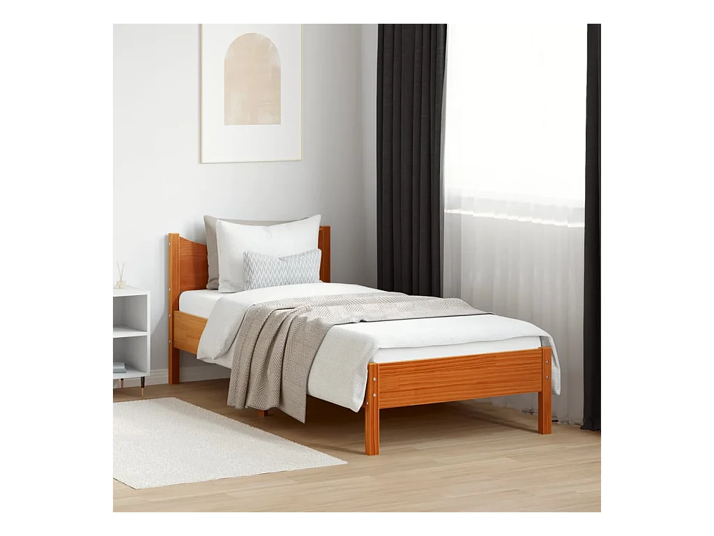 Lit simple cire marron 90x190 cm bois de pin massif FR23981
