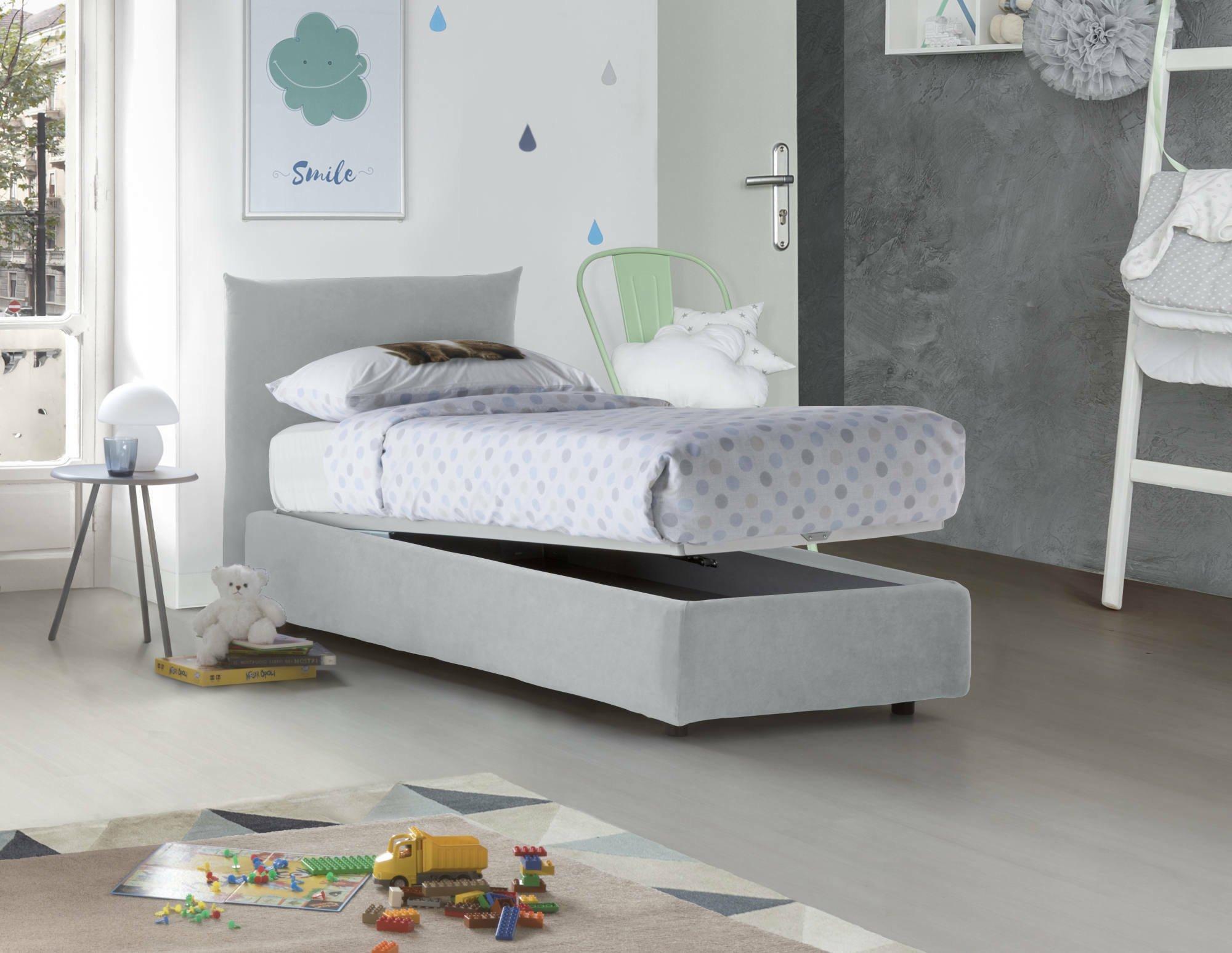 Lit simple Marina, Lit coffre avec revêtement en tissu, 100% Made in Italy, Ouverture latérale, adapté pour matelas 80x190 cm, Blanc