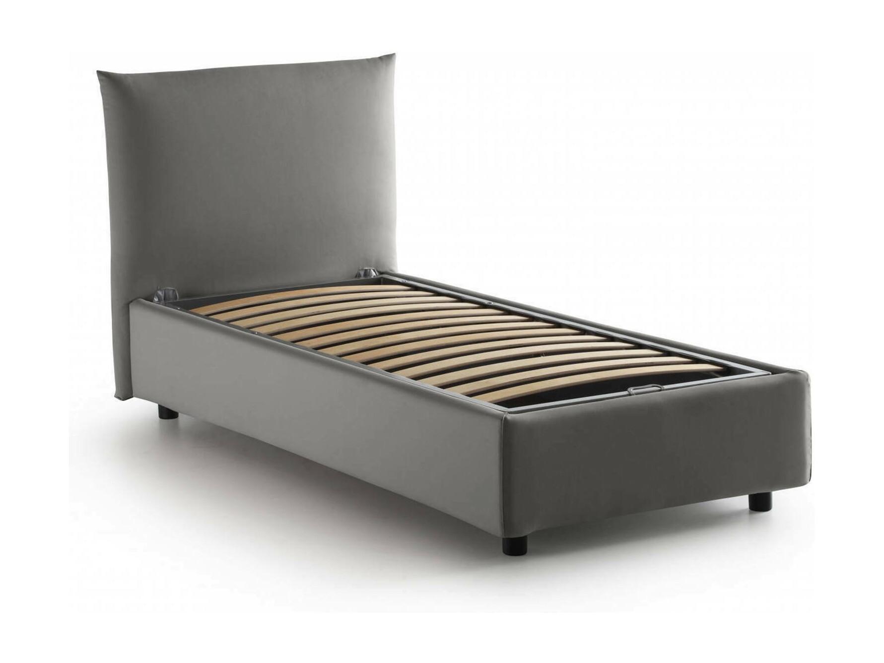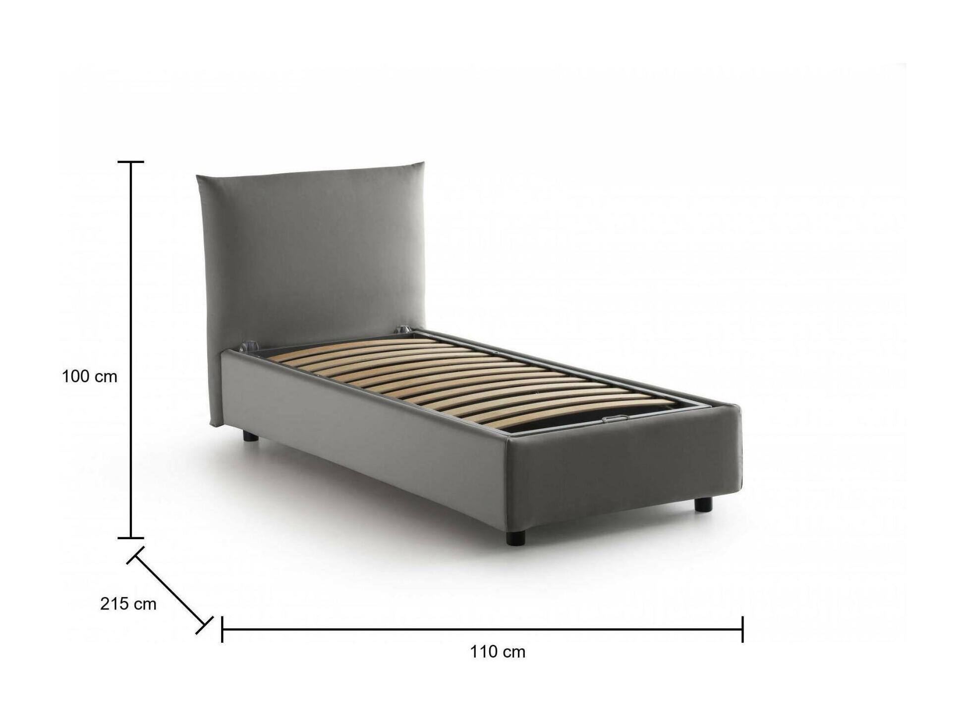 Lit simple Clarissa, Lit coffre avec revêtement en tissu, 100% Made in Italy, Ouverture frontale, adapté pour matelas 80x190 cm, Gris