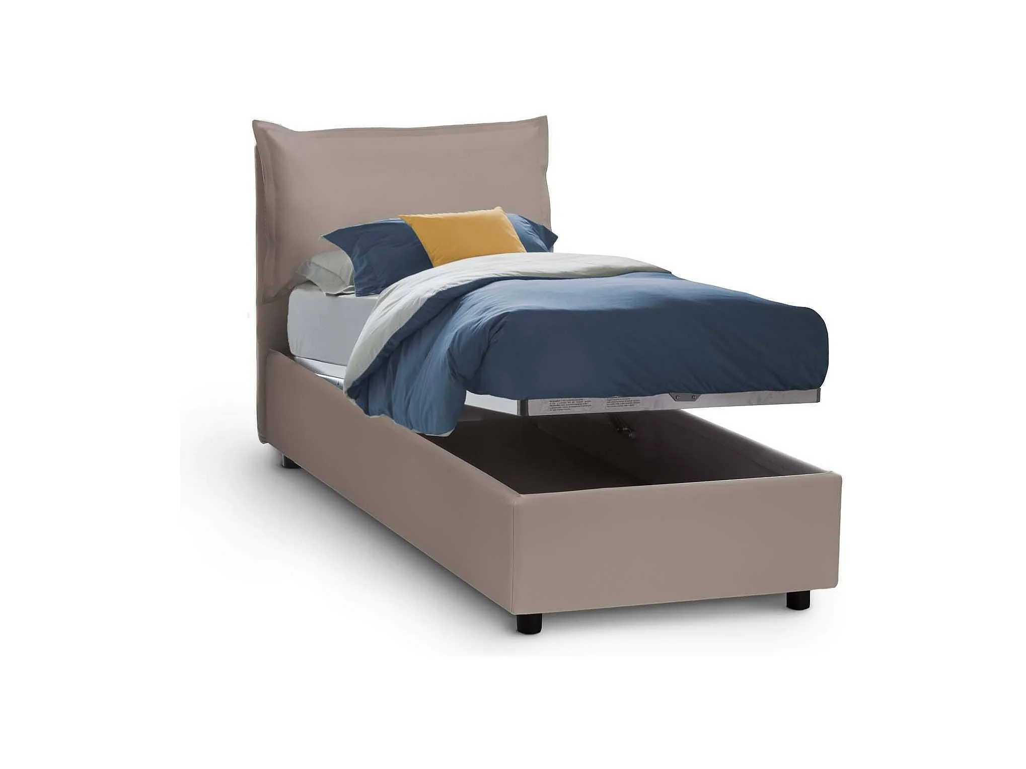 Lit simple Cristina, Lit coffre avec revêtement en éco-cuir, 100% Made in Italy, Ouverture frontale, adapté pour matelas 80x200 cm, Taupe