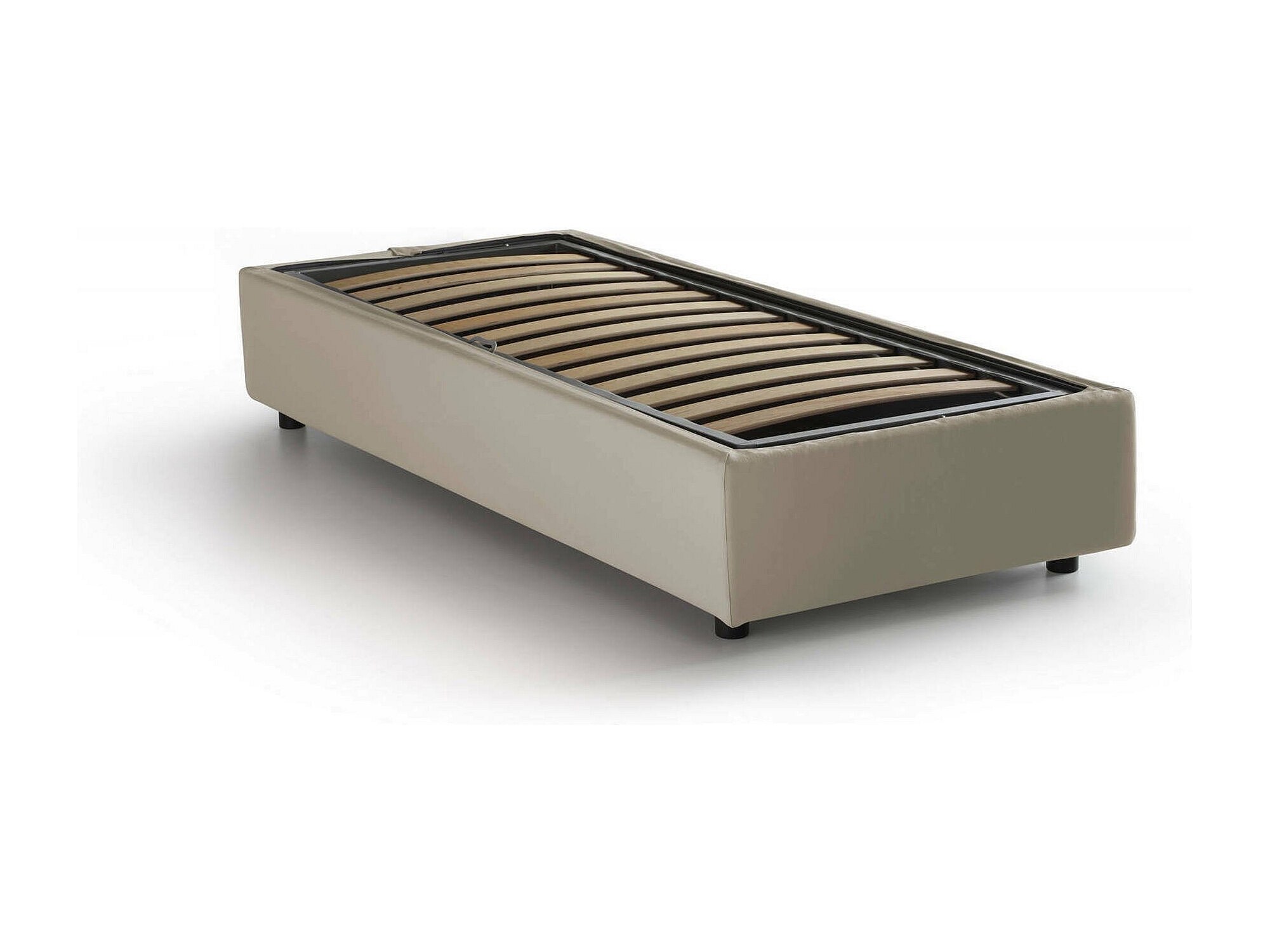 Lit simple Darut, Lit coffre avec revêtement en tissu, 100% Made in Italy, Ouverture latérale, adapté pour matelas 80x190 cm, Beige
