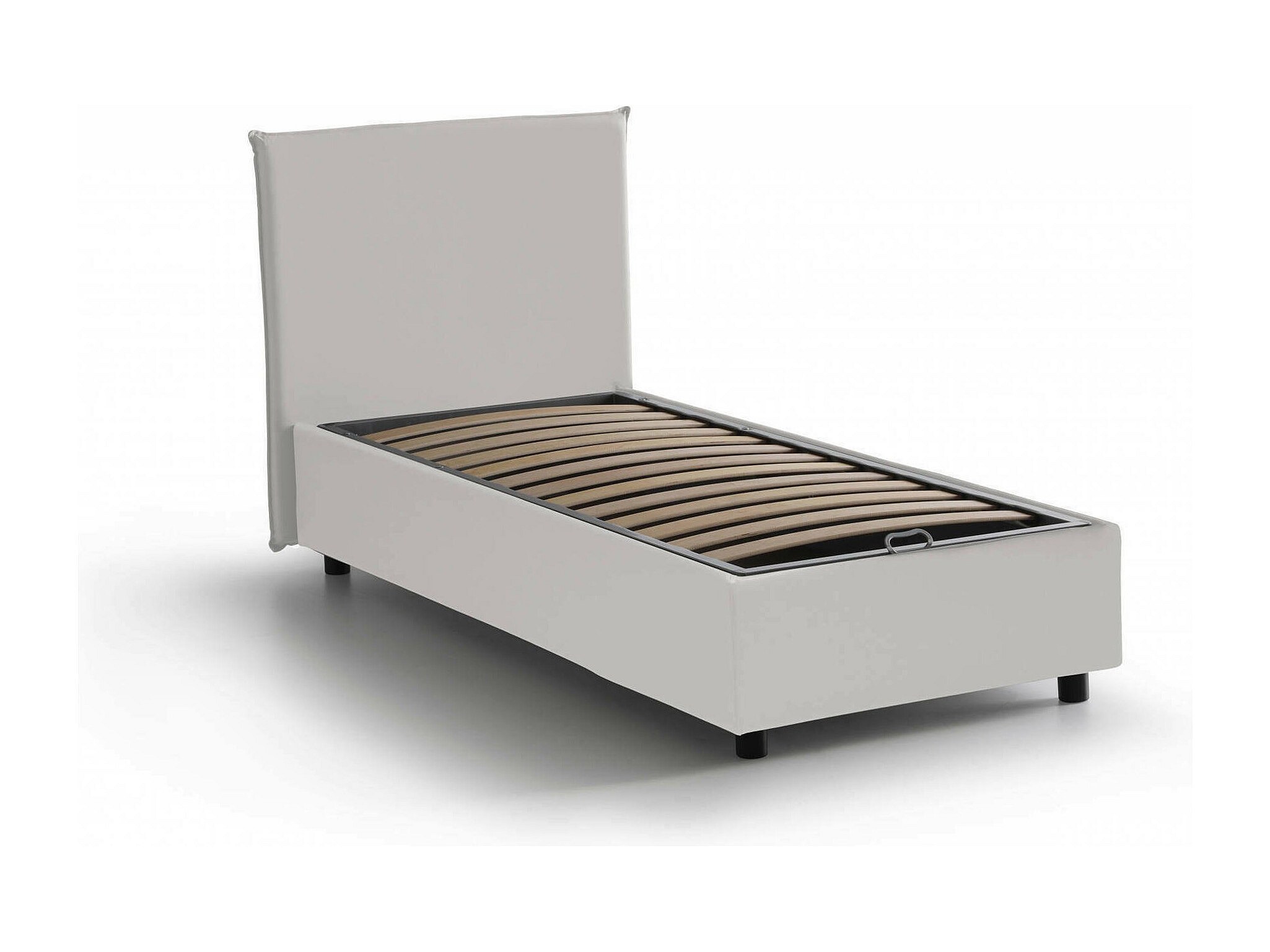 Lit simple Danton, Lit coffre avec revêtement en éco-cuir, 100% Made in Italy, Ouverture frontale, adapté pour matelas 80x190 cm, Blanc