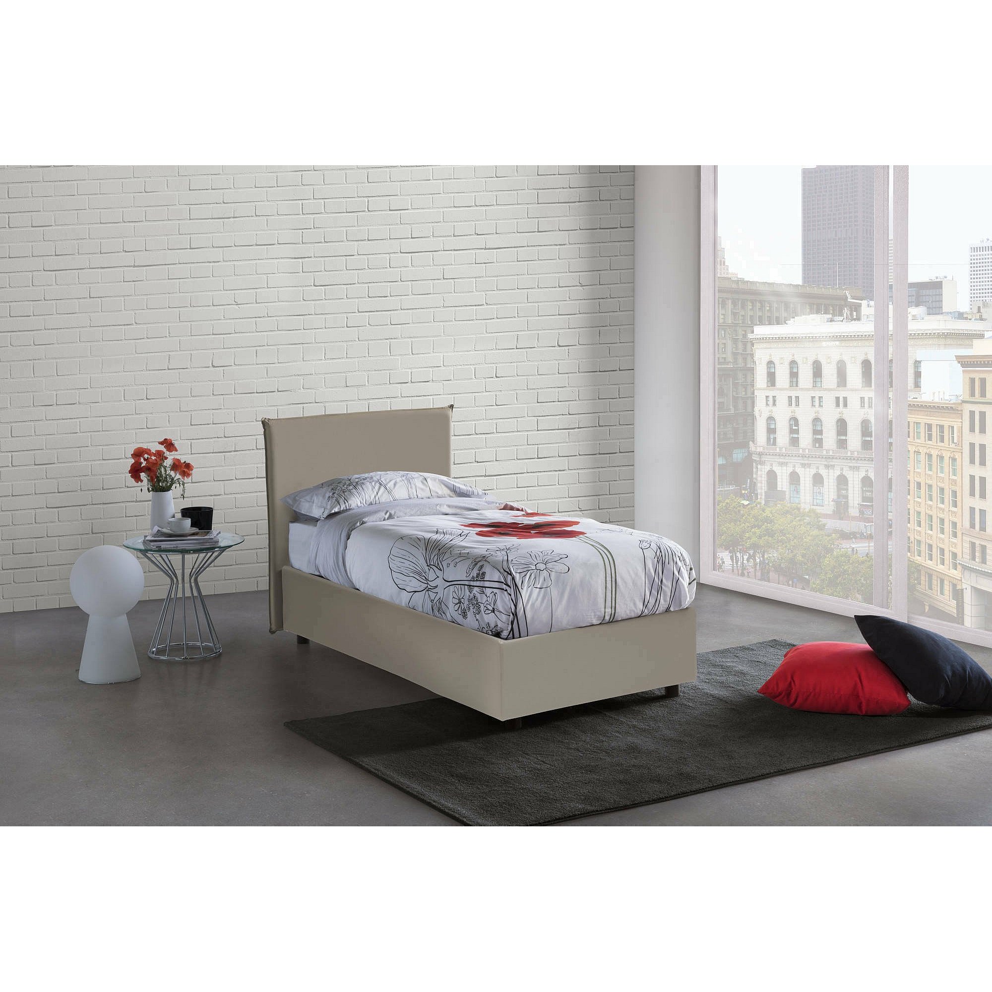 Lit simple Daram, Lit coffre avec revêtement en éco-cuir, 100% Made in Italy, Ouverture latérale, adapté pour matelas 80x190 cm, Taupe