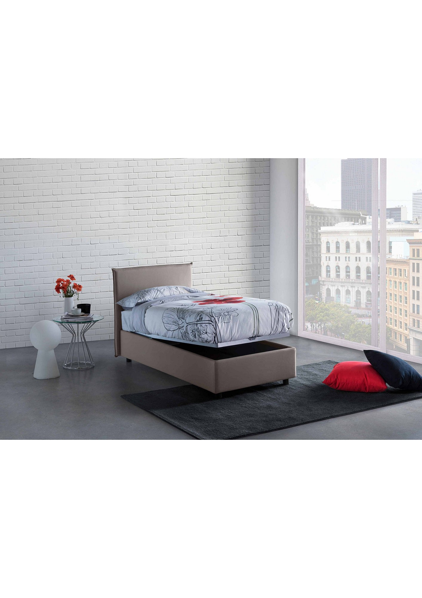 Lit simple Dapuzz, Lit coffre avec revêtement en tissu, 100% Made in Italy, Ouverture frontale, adapté pour matelas 80x190 cm, Taupe