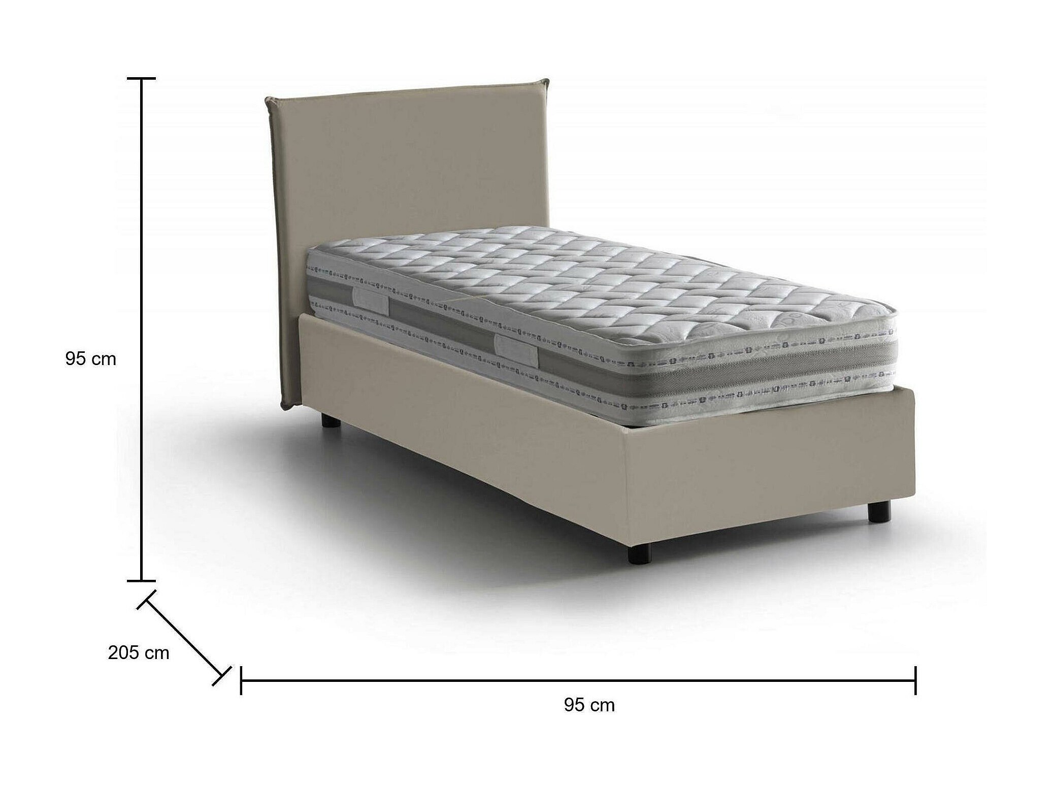 Lit simple Daram, Lit coffre avec revêtement en éco-cuir, 100% Made in Italy, Ouverture latérale, adapté pour matelas 80x190 cm, Taupe