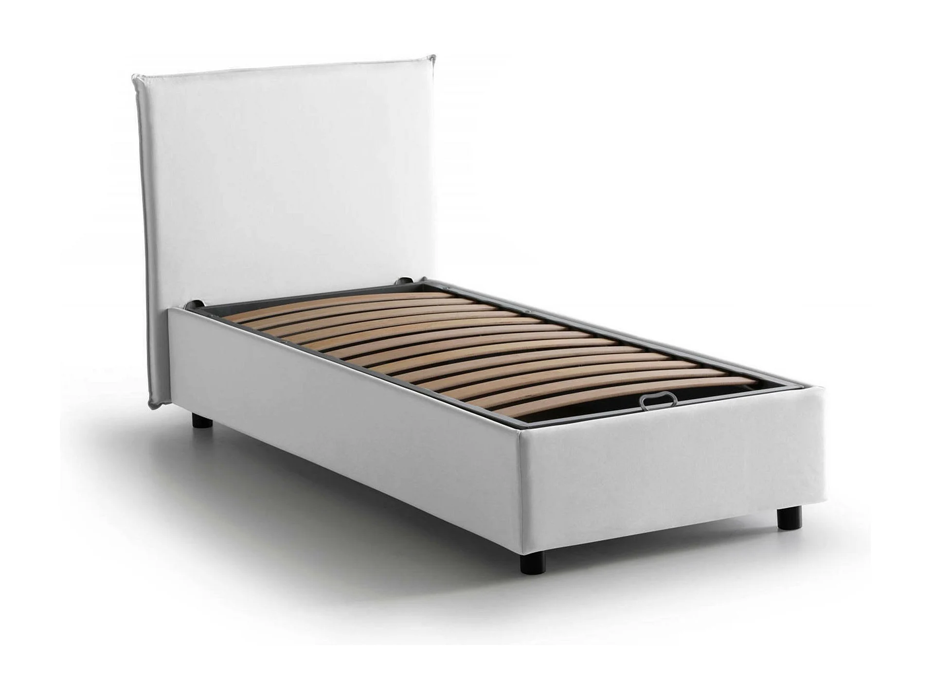 Lit simple Dbacchi, Lit coffre avec revêtement en tissu, 100% Made in Italy, Ouverture frontale, adapté pour matelas 80x200 cm, Blanc