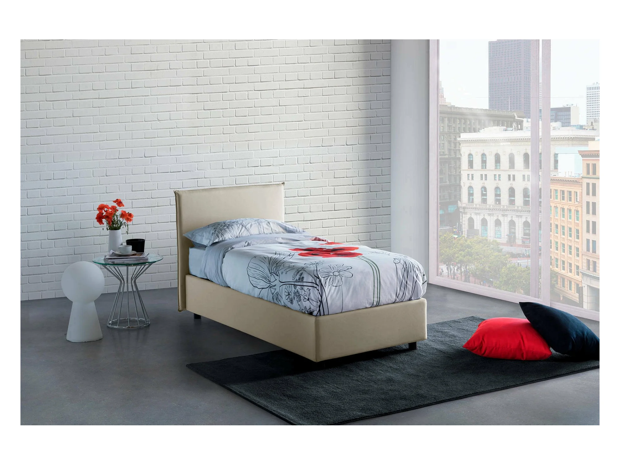 Lit simple Gemma, Lit coffre avec revêtement en tissu, 100% Made in Italy, Ouverture frontale, adapté pour matelas 80x200 cm, Beige