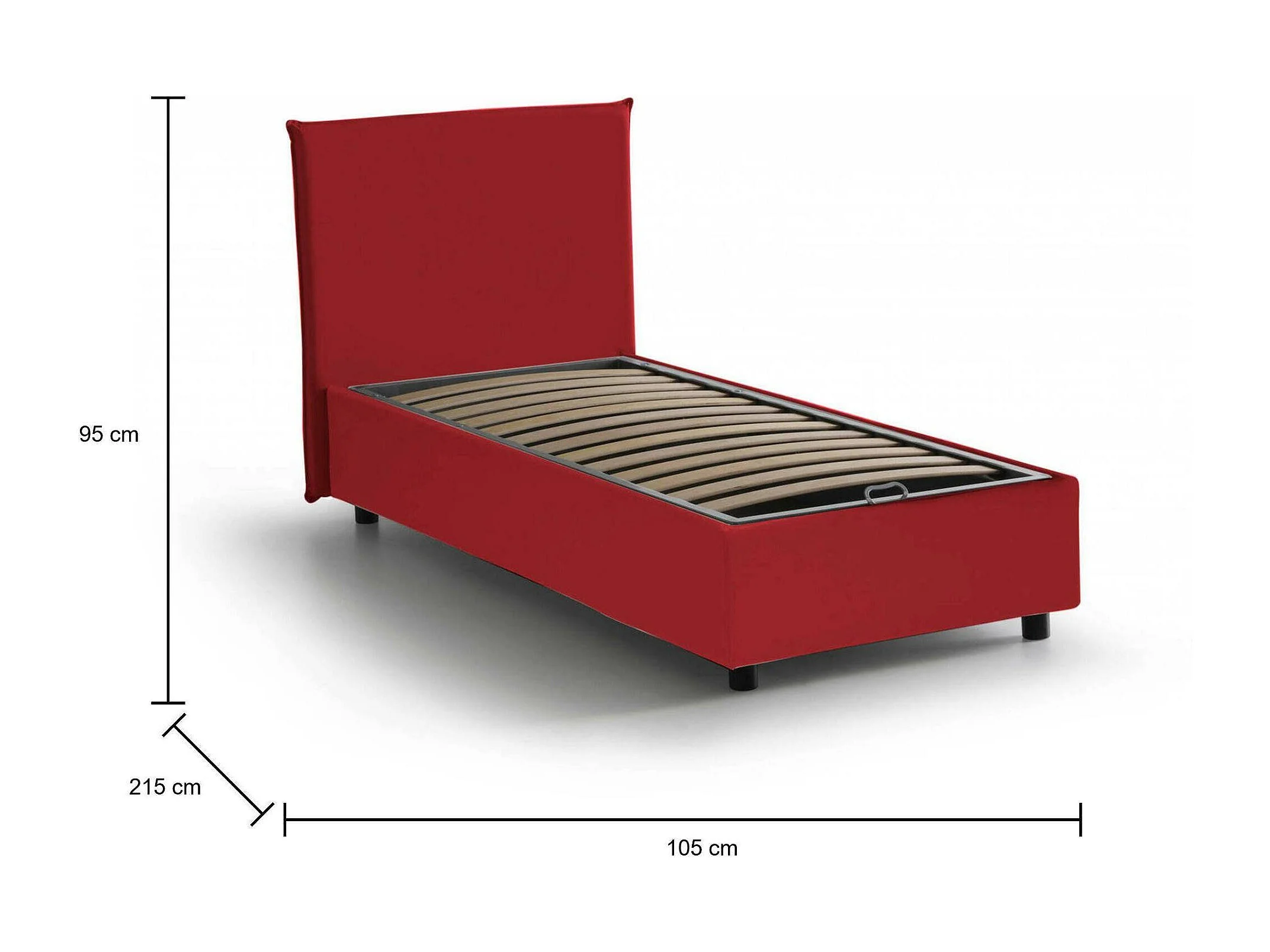 Lit simple Dbasell, Lit coffre avec revêtement en tissu, 100% Made in Italy, Ouverture frontale, adapté pour matelas 90x200 cm, Rouge