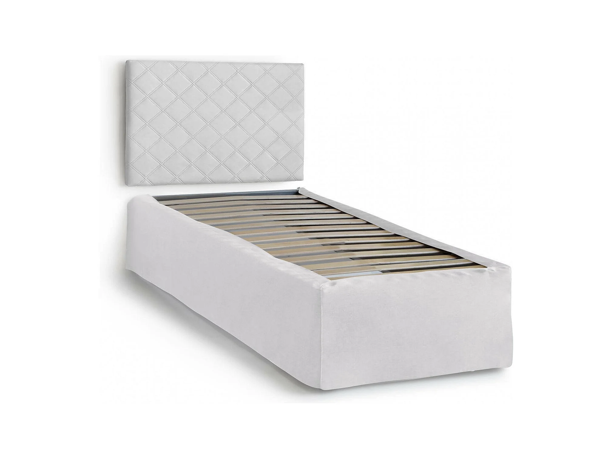 Lit simple Dbertol, Tête de lit en similicuir avec base orthopédique et cantonnière, 100% Made in Italy, adapté pour lit simple, matelas inclus, Cm 80x190, Blanc,