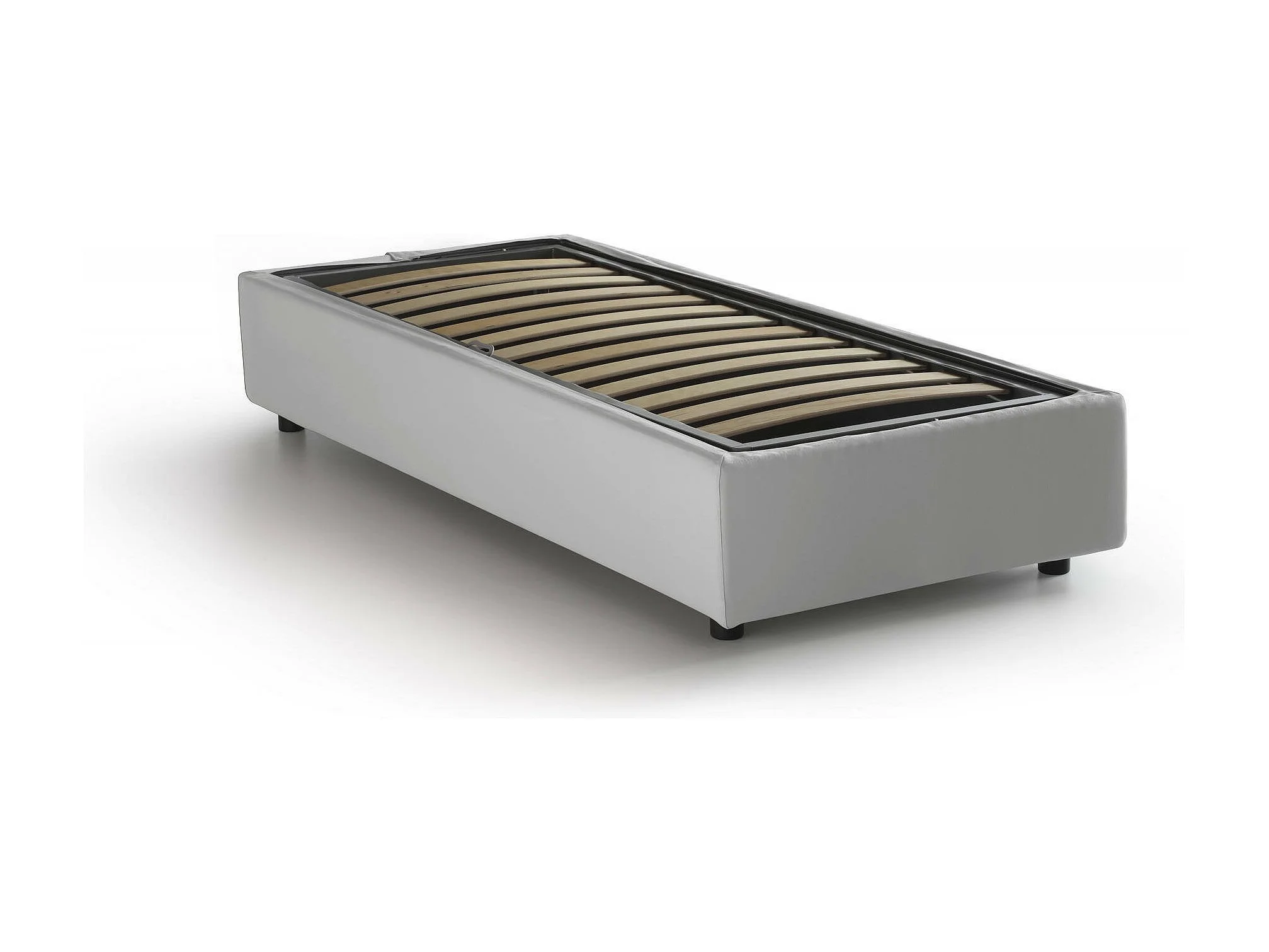 Lit simple Dcinott, Lit coffre avec revêtement en éco-cuir, 100% Made in Italy, Ouverture frontale, avec matelas 80x190 cm inclus, Blanc
