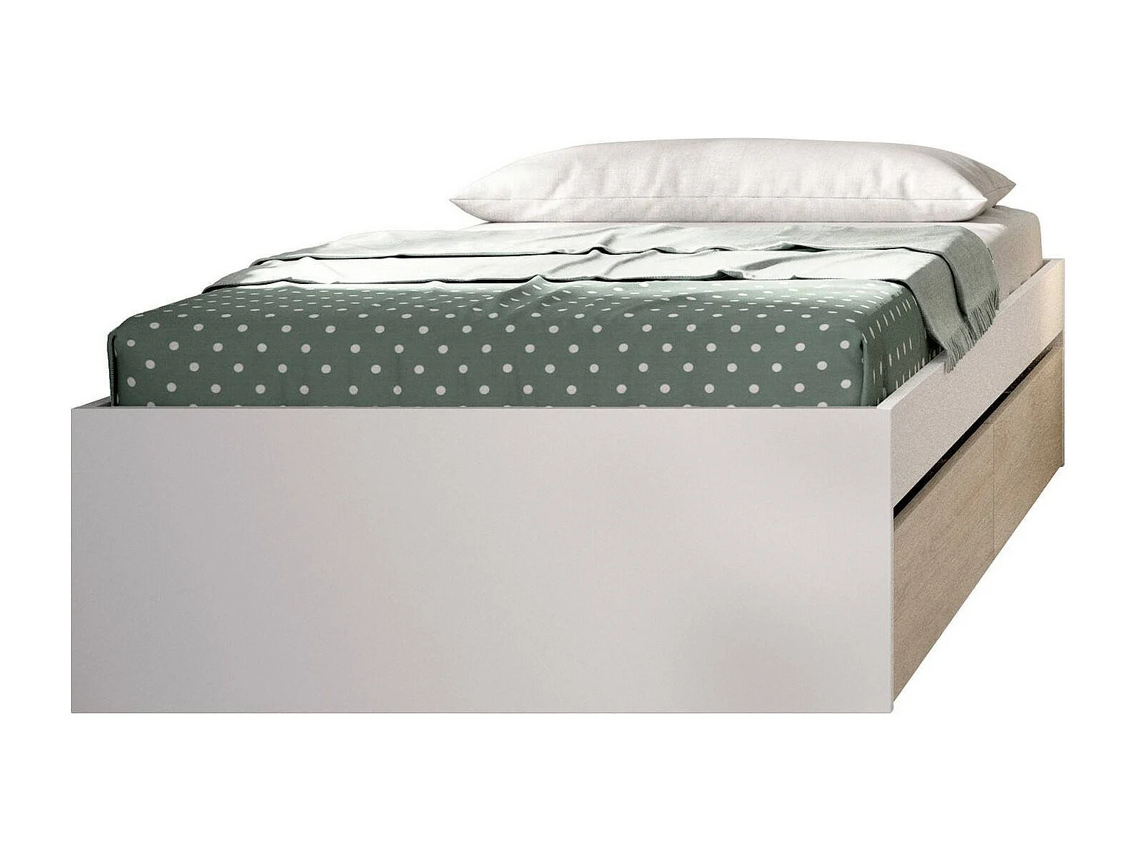 Lit simple Ddetr, Sommier pour chambre, Literie par chambre, Support de matelas, 96x195 h40 cm, Blanc et Chêne clair