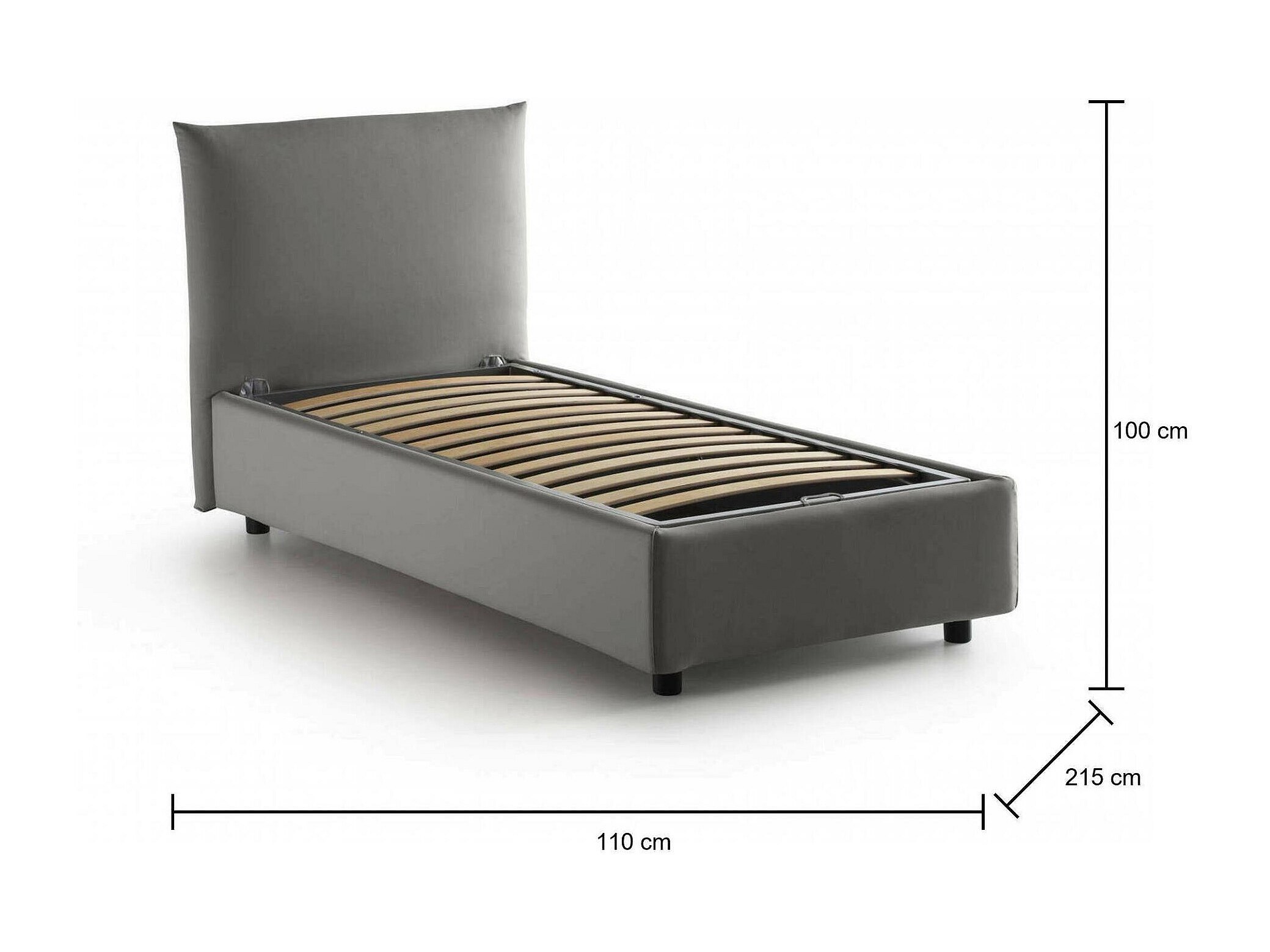Lit simple Dbut, Lit coffre avec revêtement en tissu, 100% Made in Italy, Ouverture frontale, avec matelas 80x190 cm inclus, Gris