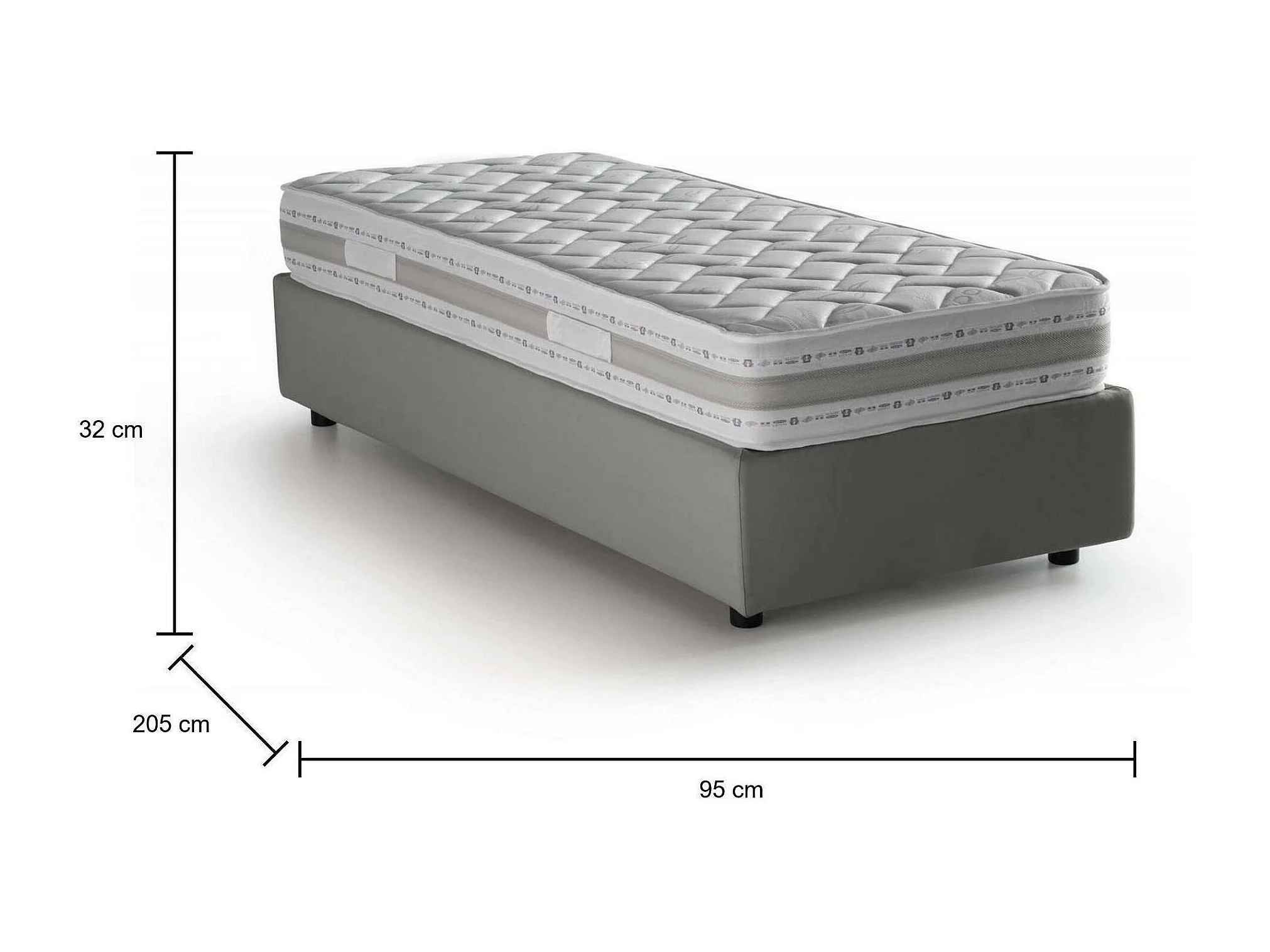 Lit simple Diana, Lit coffre avec revêtement en tissu, 100% Made in Italy, Ouverture latérale, avec matelas 80x190 cm inclus, Gris