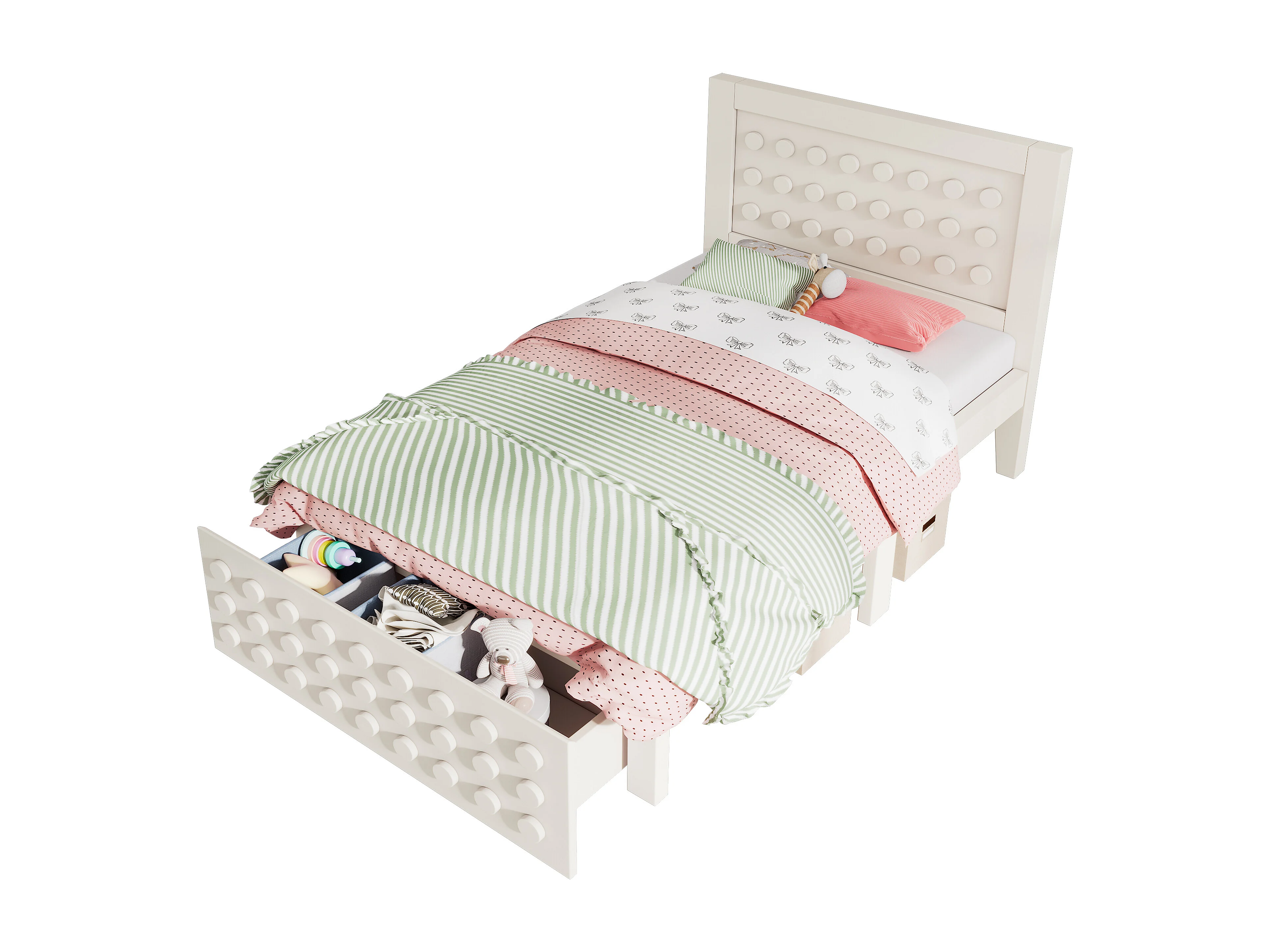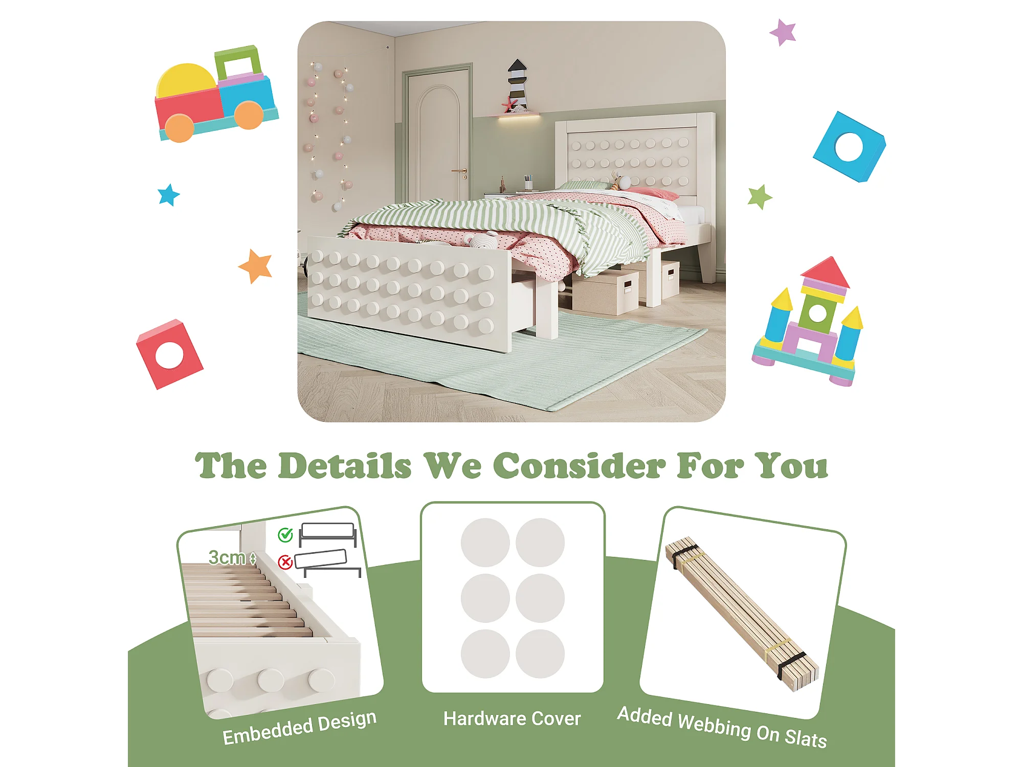 Lit Enfants 90 x 200 cm - Cadre en Bois Massif, Tiroir et Espace Sous-Lit 26 cm - Design Bloc Créatif avec Bords Chanfreinés Sans matelas - Blanc