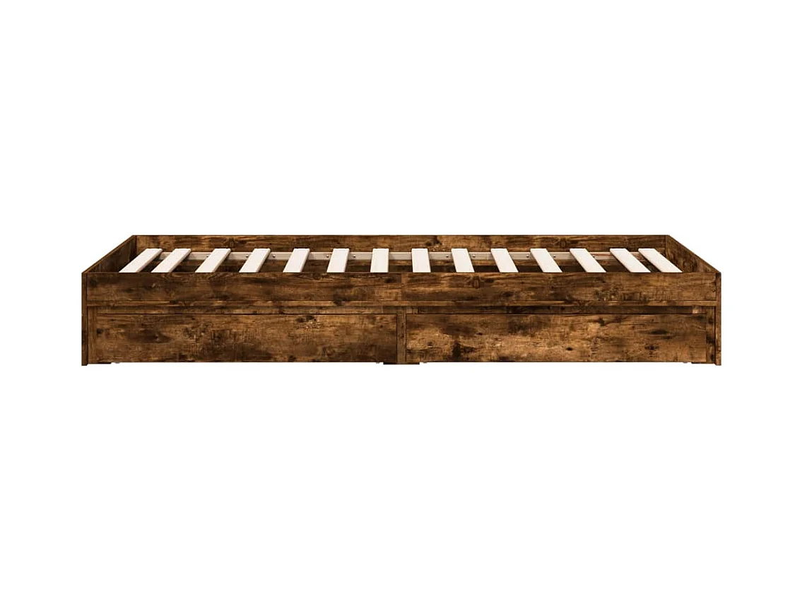 Lit simple et tiroirs chêne fumé 90x200 cm bois d'ingénierie FR81089
