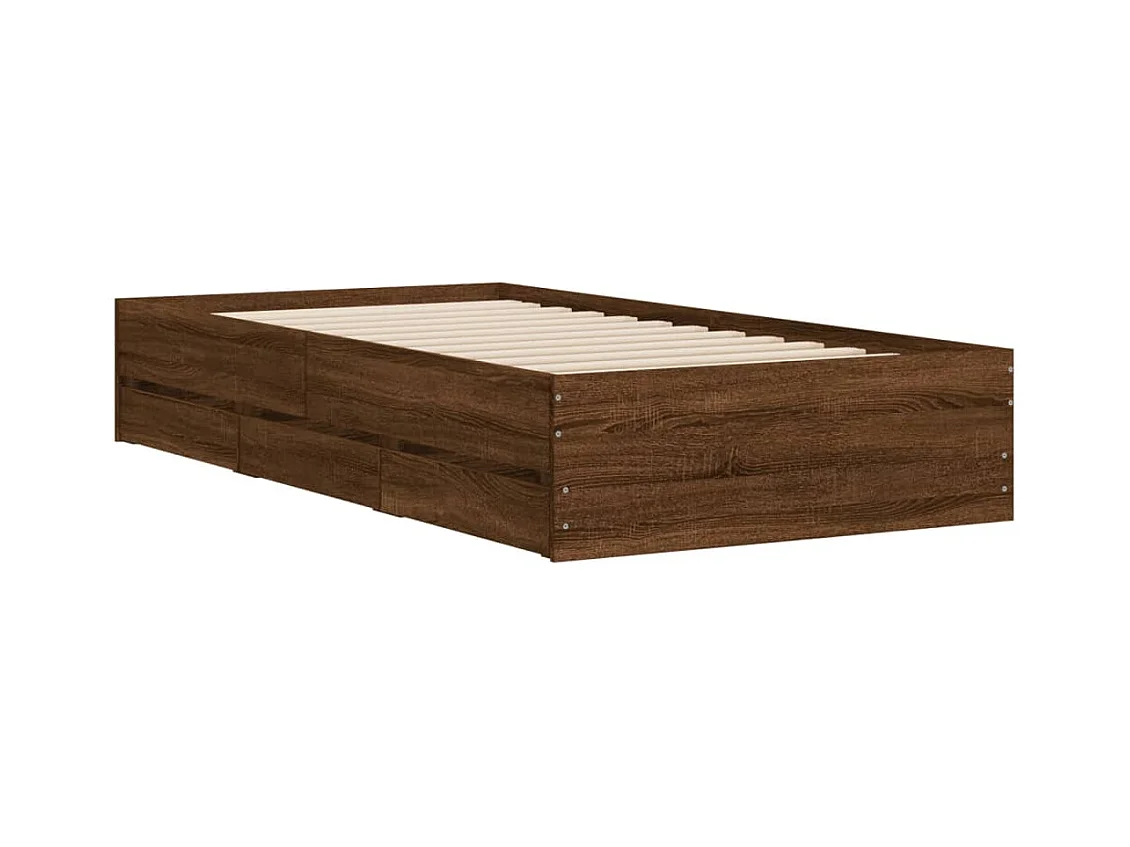 Lit simple et tiroirs chêne marron 90x200cm bois d'ingénierie FR51275