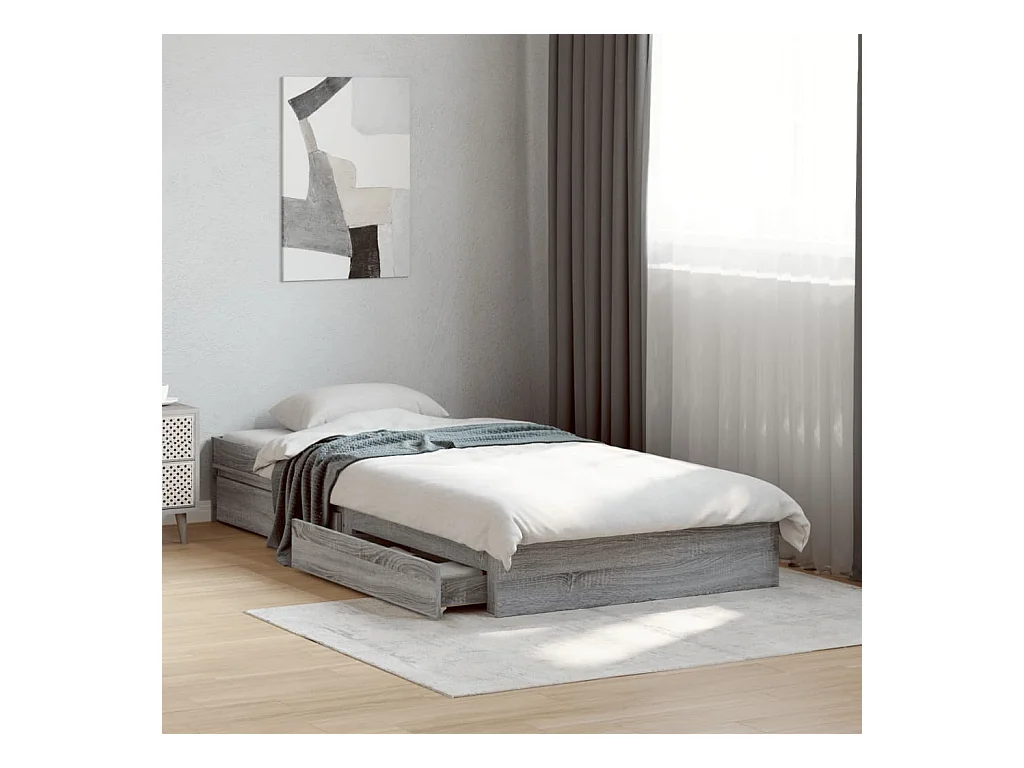 Lit simple et tiroirs sonoma gris 90x200 cm bois d'ingénierie FR80757