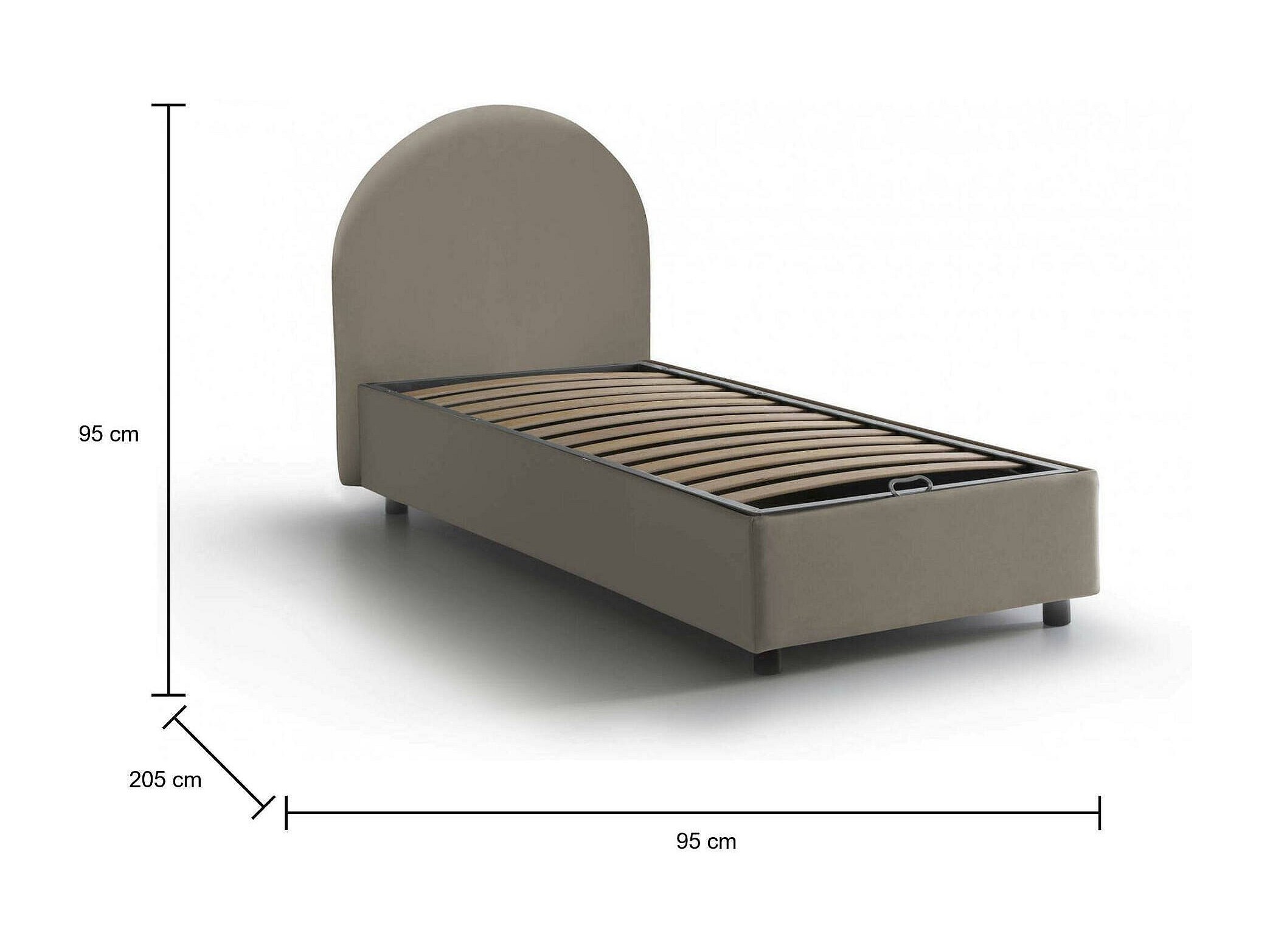 Lit simple Luna, lit coffre avec revêtement en tissu, 100% Made in Italy, ouverture latérale, adapté pour matelas 80x190 cm, gris tourterelle
