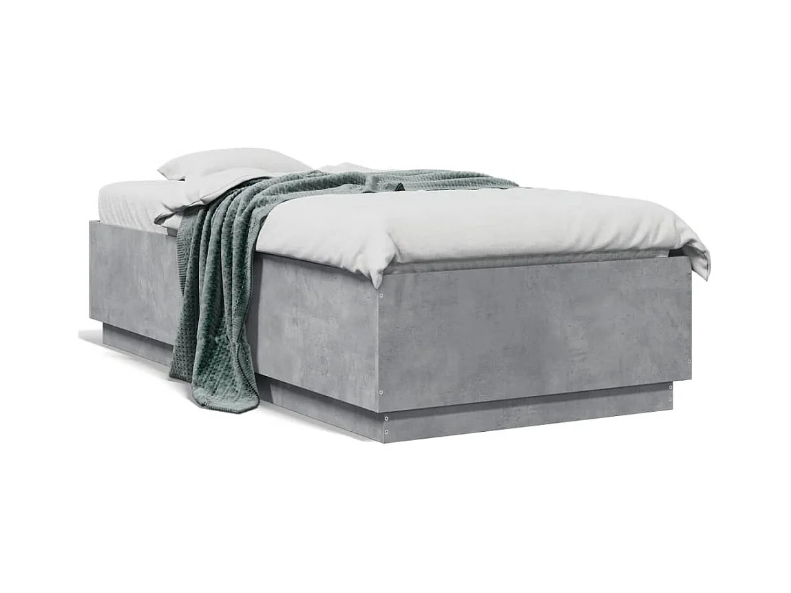 Lit simple gris béton 75x190 cm bois d'ingénierie FR25533
