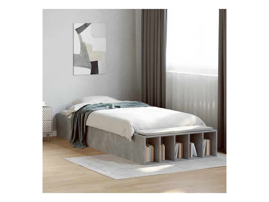 Lit simple gris béton 90x190 cm bois d'ingénierie FR96870