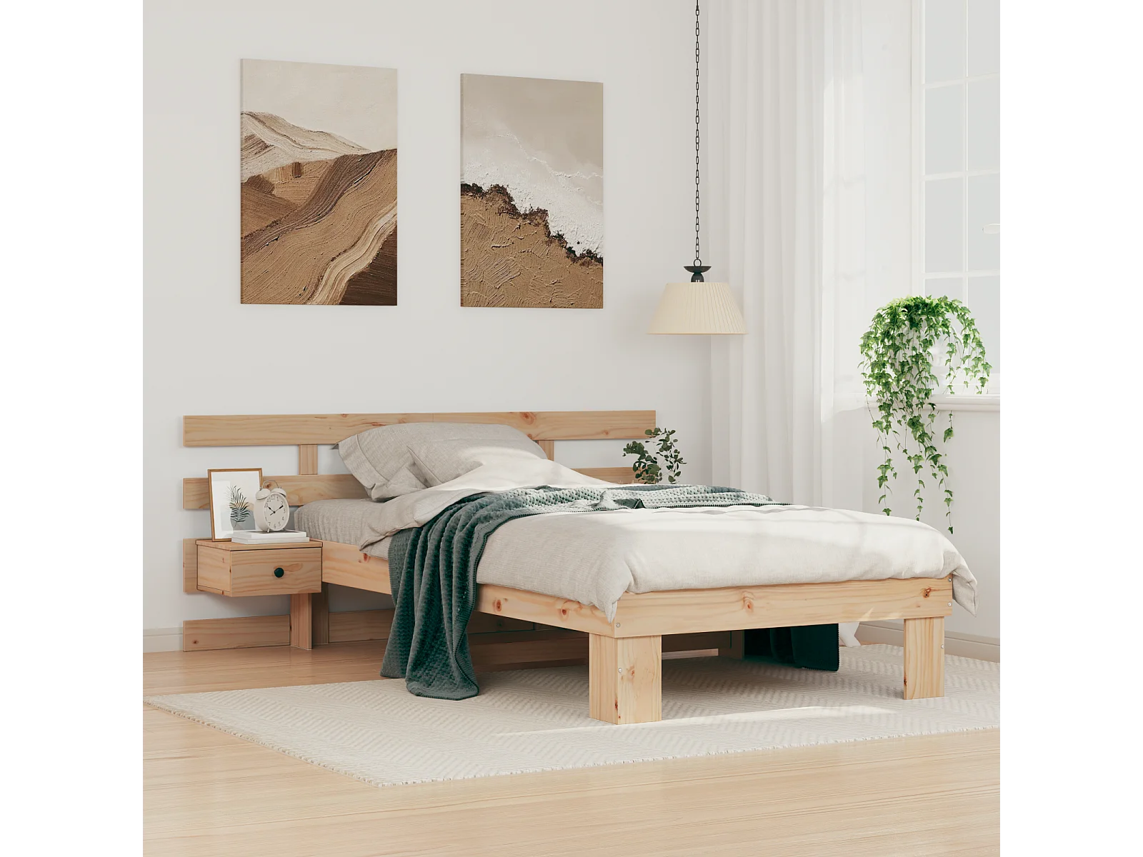 Lit simple | Lit adulte, enfant | Cadre de lit avec tiroir Marron 100x200 cm Bois massif en pin