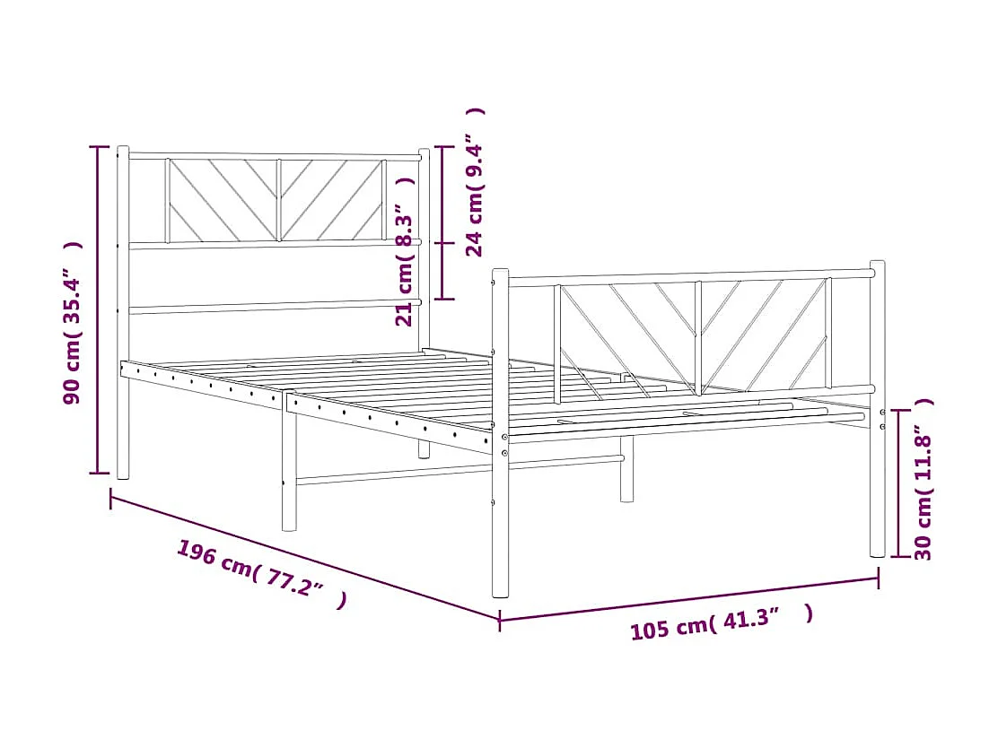 Lit simple | Lit adulte, enfant | Cadre de lit métal avec pied de lit noir 100x190cm