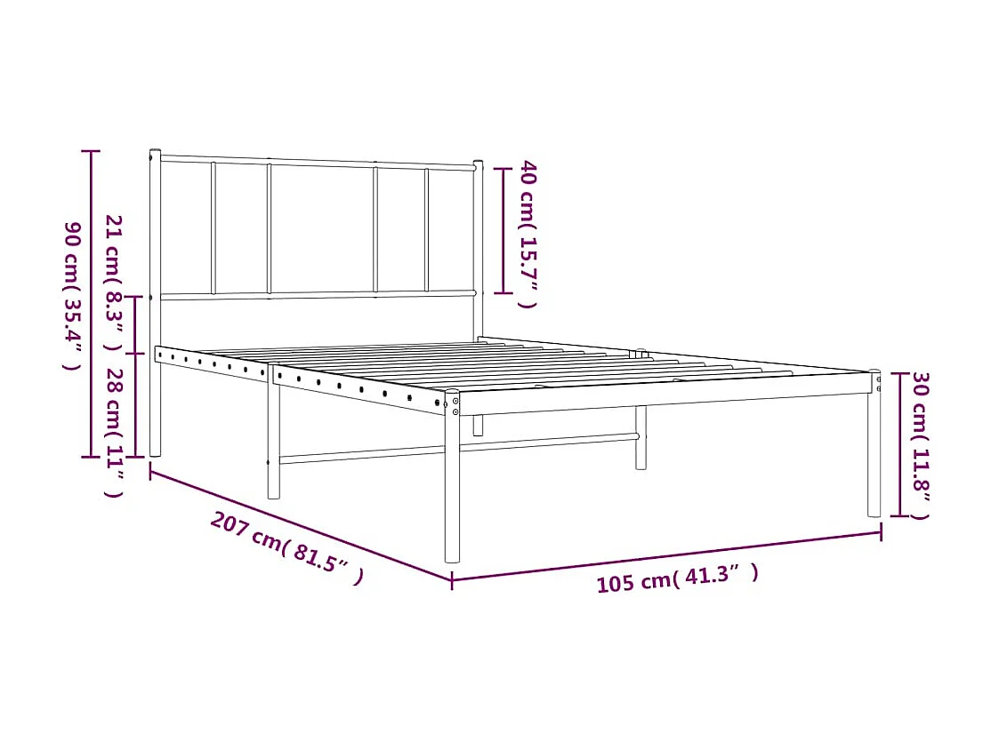 Lit simple | Lit adulte, enfant | Cadre de lit métal et tête de lit blanc 100x200 cm
