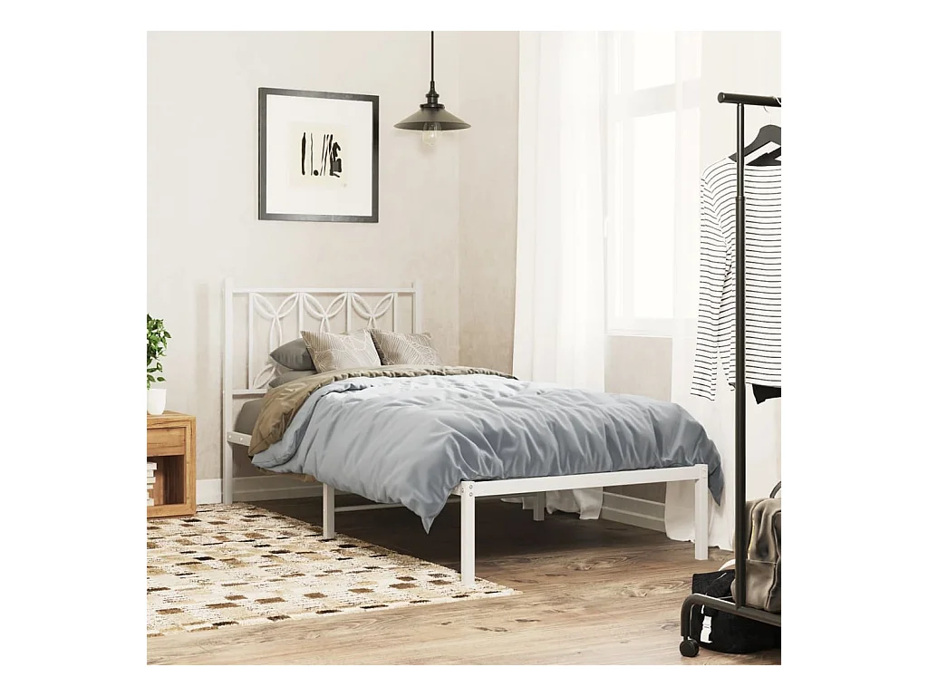 Lit simple métal + tête de lit blanc 75x190 cm FR39687