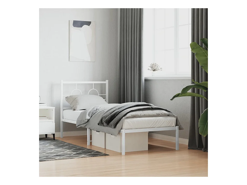 Lit simple métal + tête de lit blanc 80x200 cm FR23765