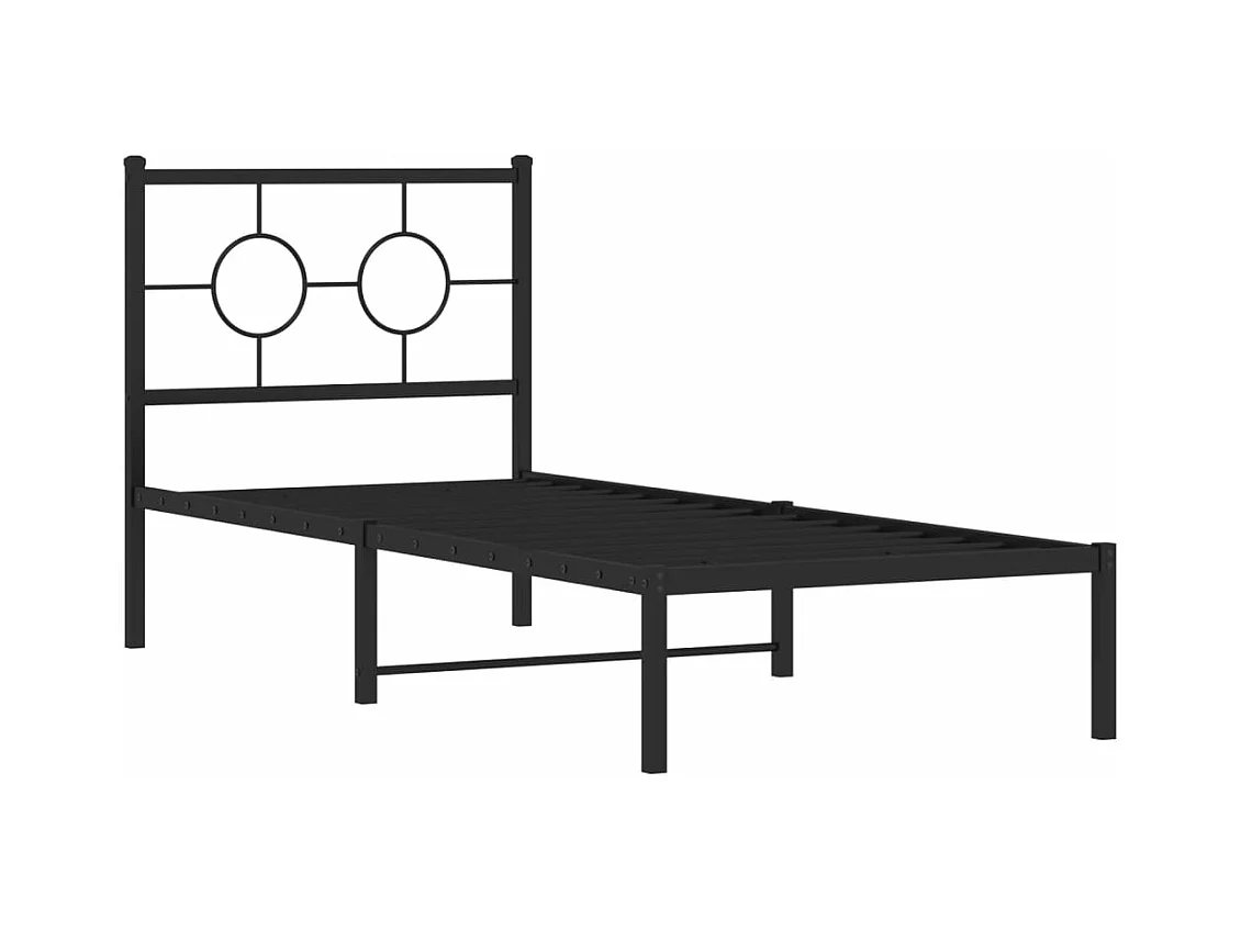 Lit simple métal + tête de lit noir 75x190 cm FR92615