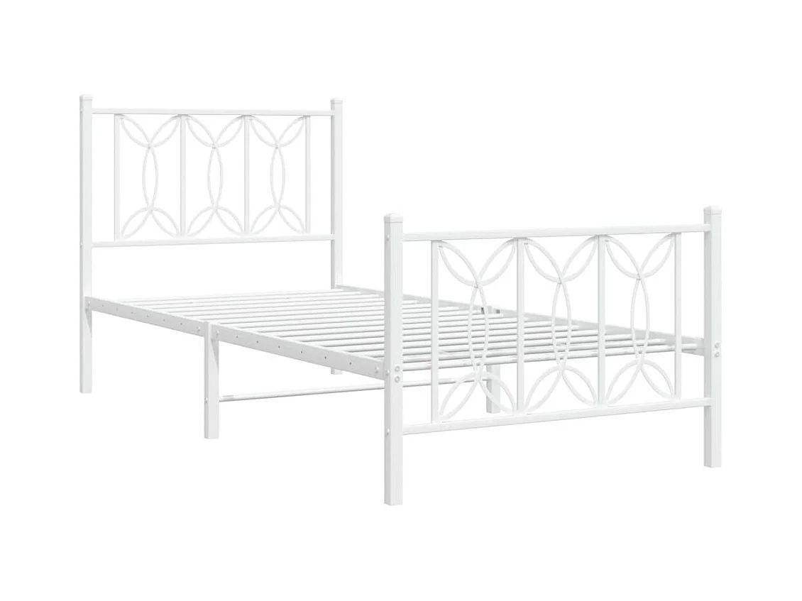 Lit simple métal + tête de lit/pied de lit blanc 75x190 cm FR75916