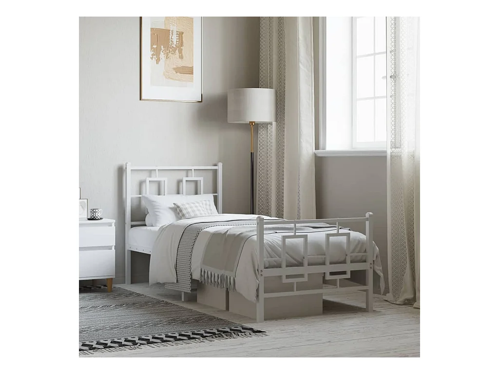 Lit simple métal + tête de lit/pied de lit blanc 80x200 cm FR43508