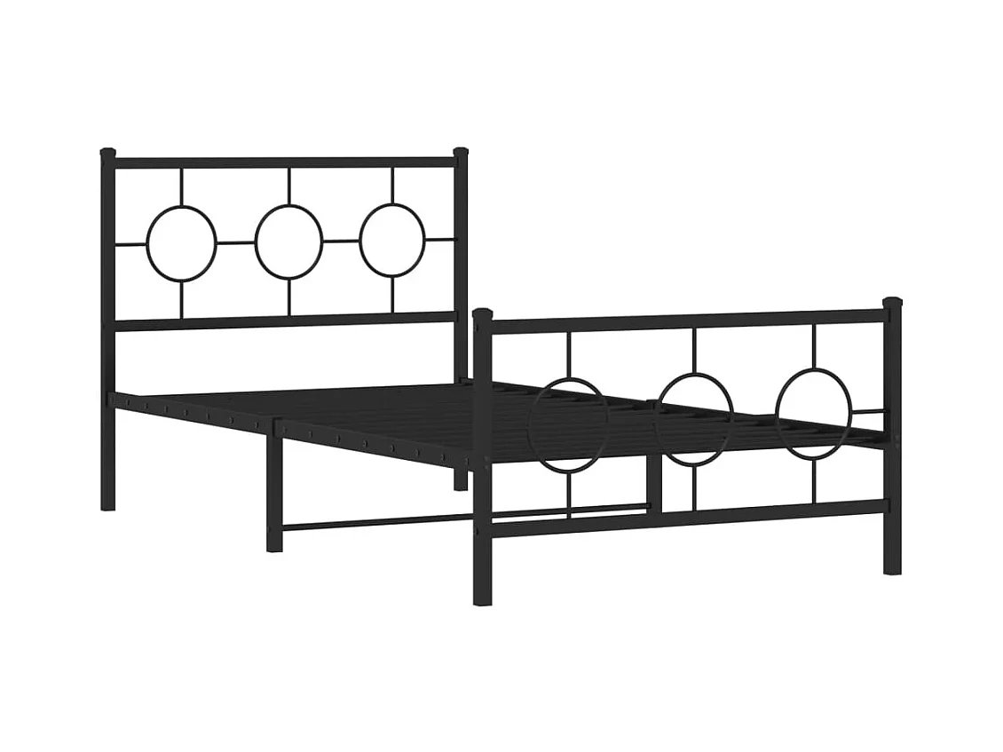 Lit simple métal + tête de lit/pied de lit noir 75x190 cm FR87678