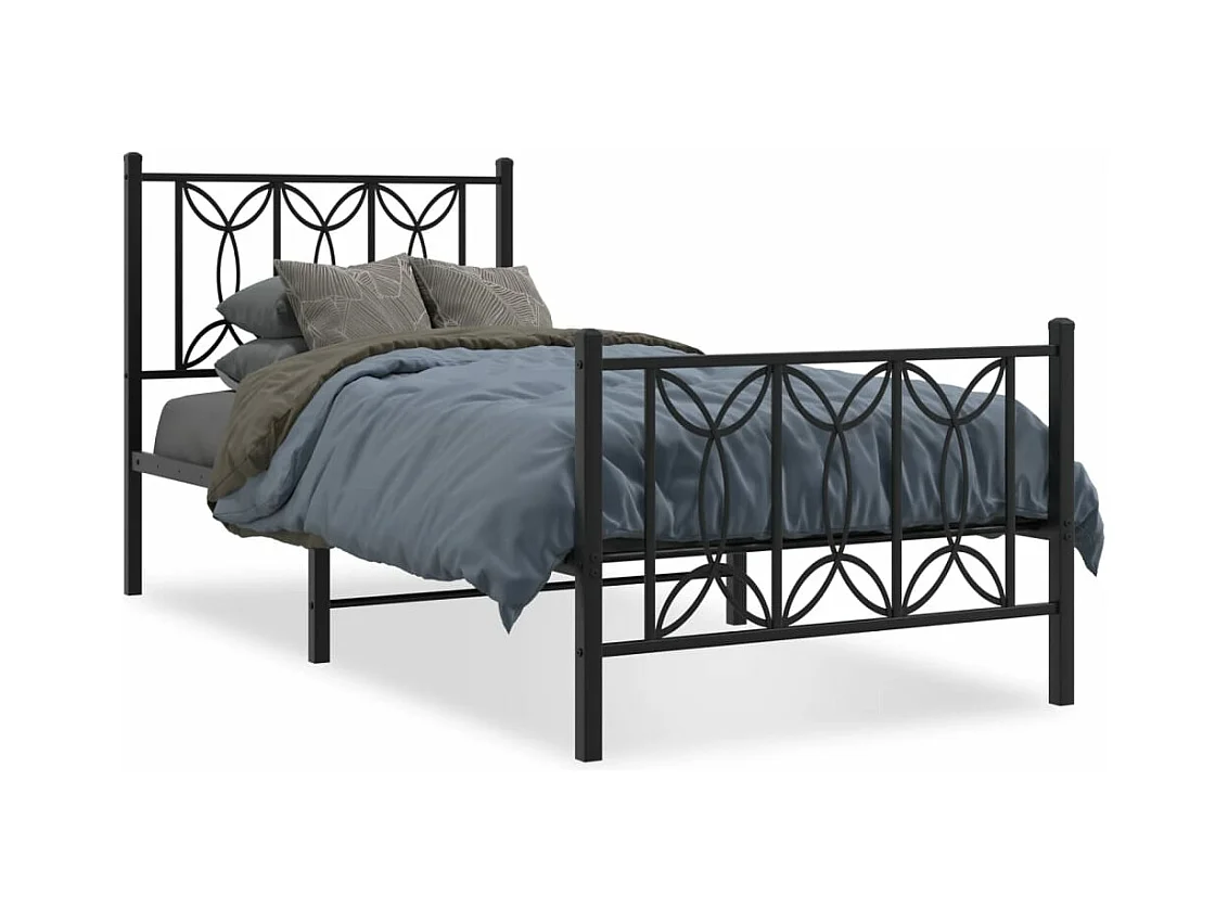 Lit simple métal + tête de lit/pied de lit noir 75x190 cm FR87678