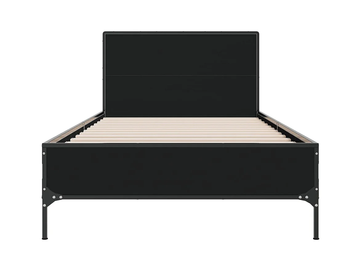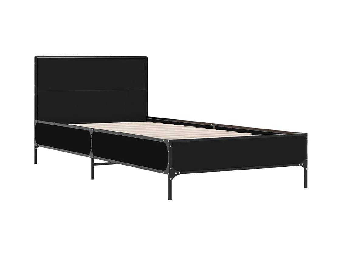 Lit simple noir 100x200 cm bois d'ingénierie et métal FR45104