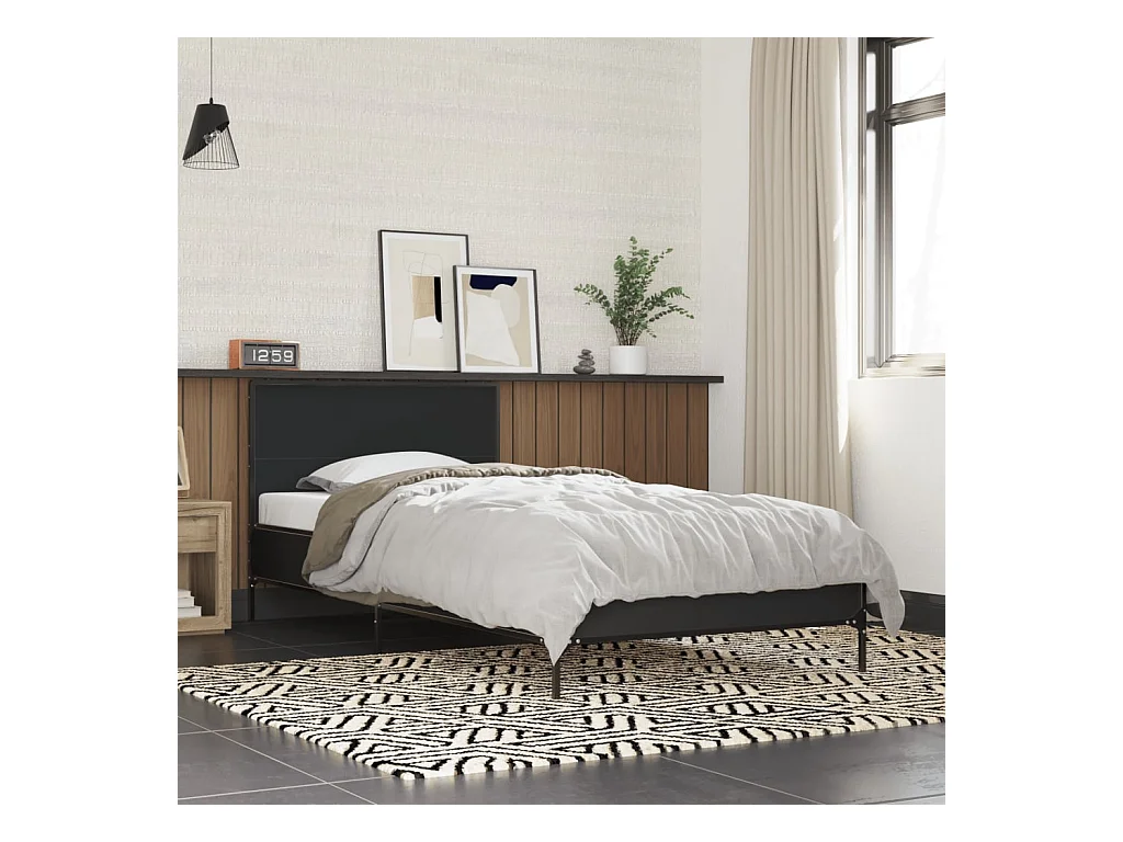 Lit simple noir 100x200 cm bois d'ingénierie et métal FR11382