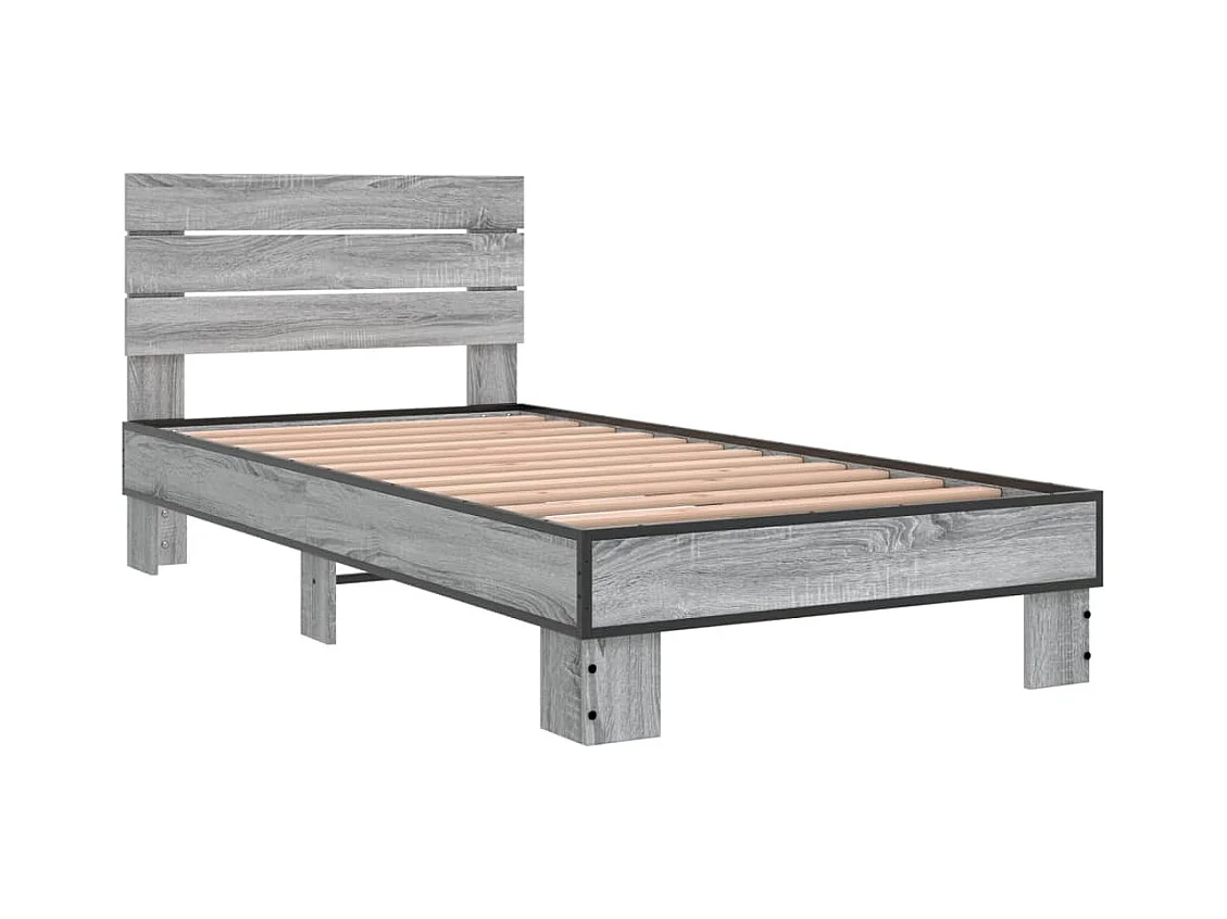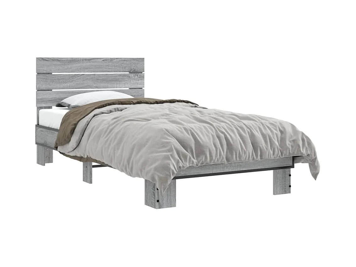 Lit simple sonoma gris 75x190 cm bois d'ingénierie et métal FR30235