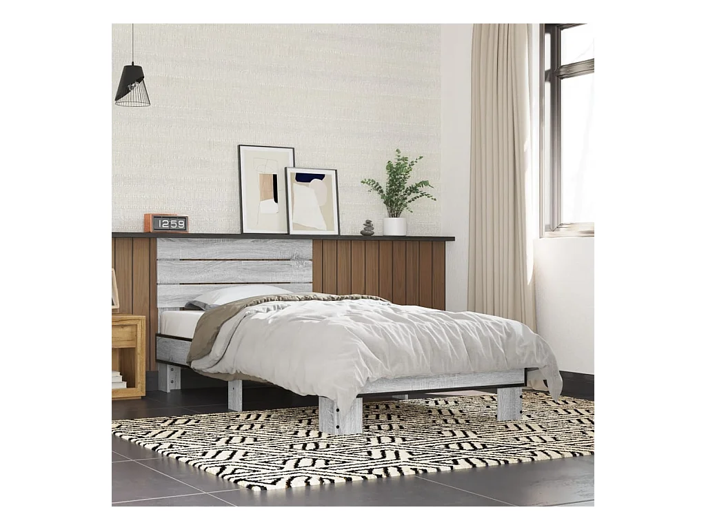 Lit simple sonoma gris 75x190 cm bois d'ingénierie et métal FR88621