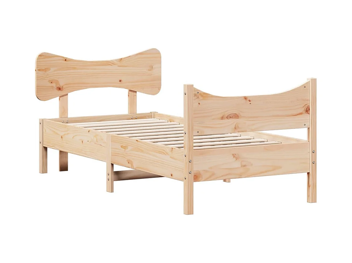 Lit simple + tête de lit 90x190 cm bois de pin massif FR16008