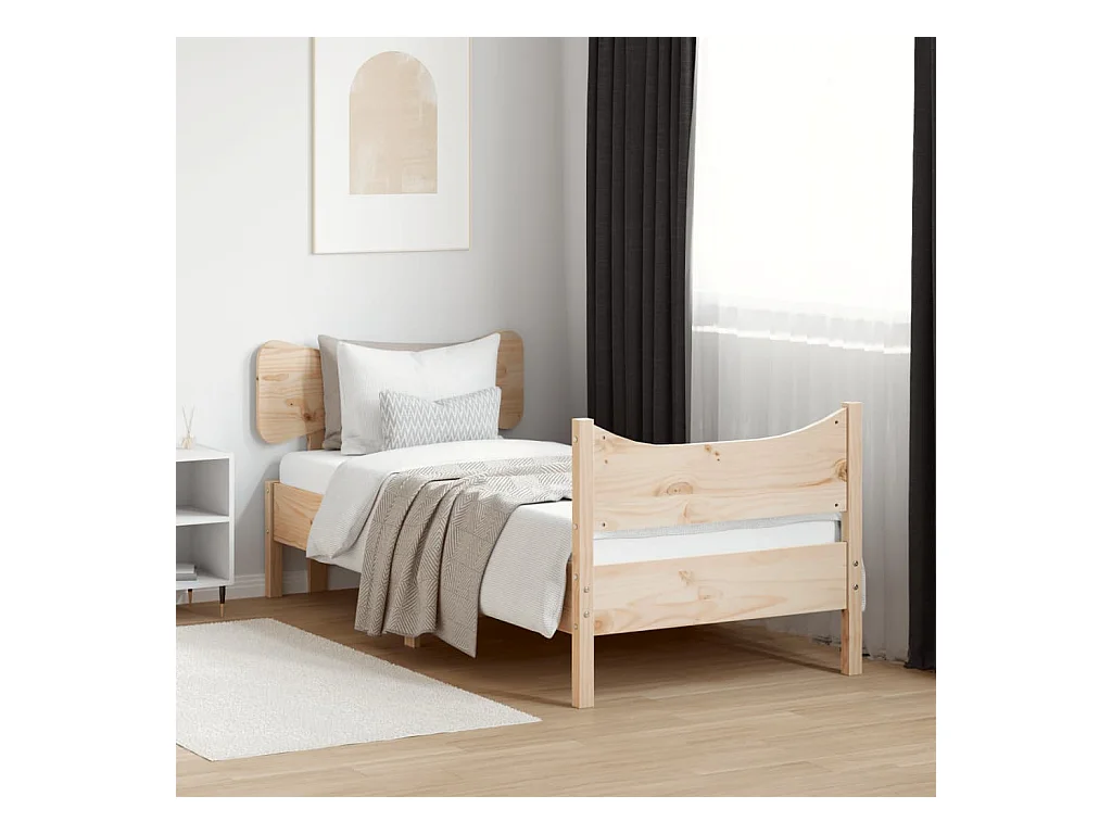Lit simple + tête de lit 90x190 cm bois de pin massif FR42419