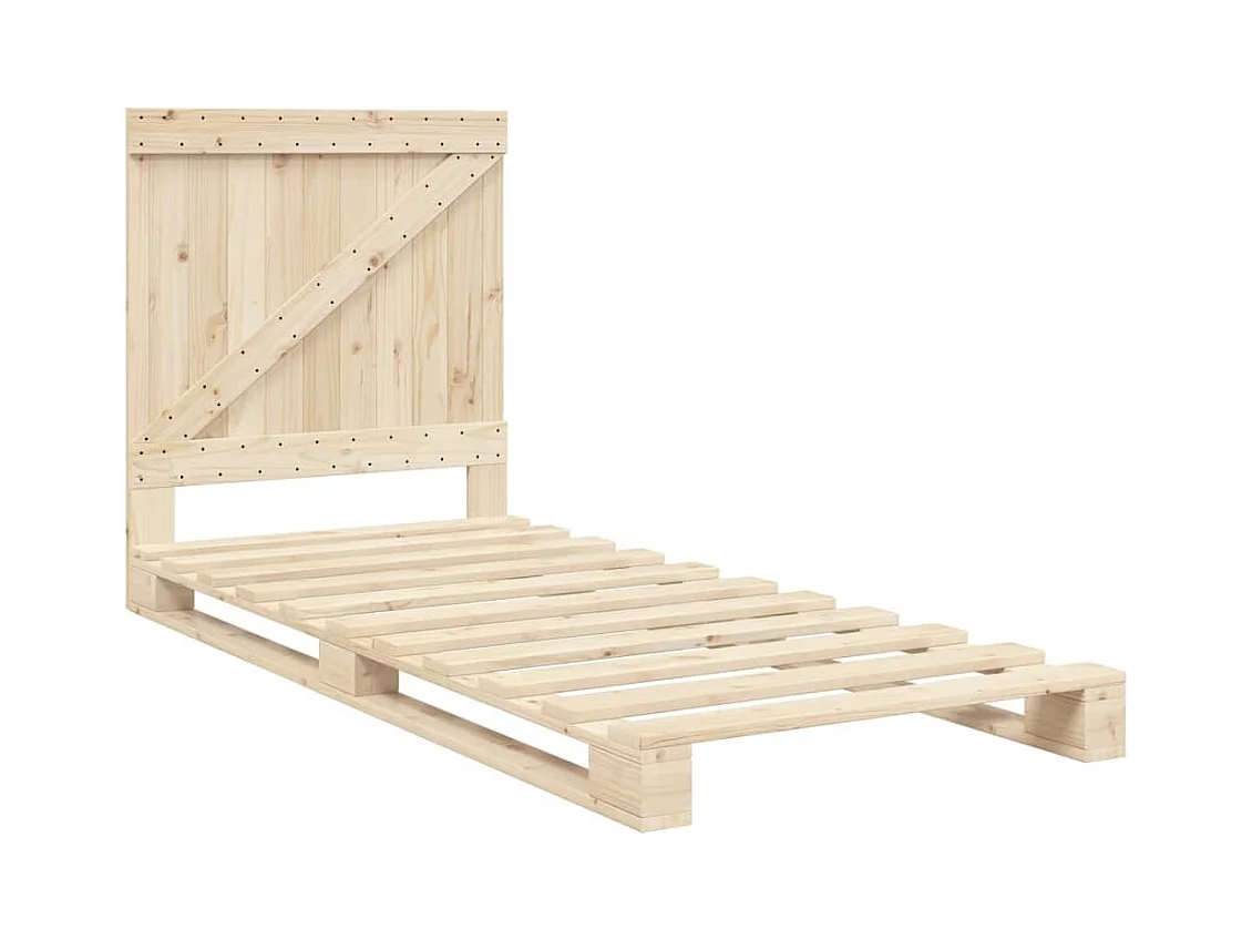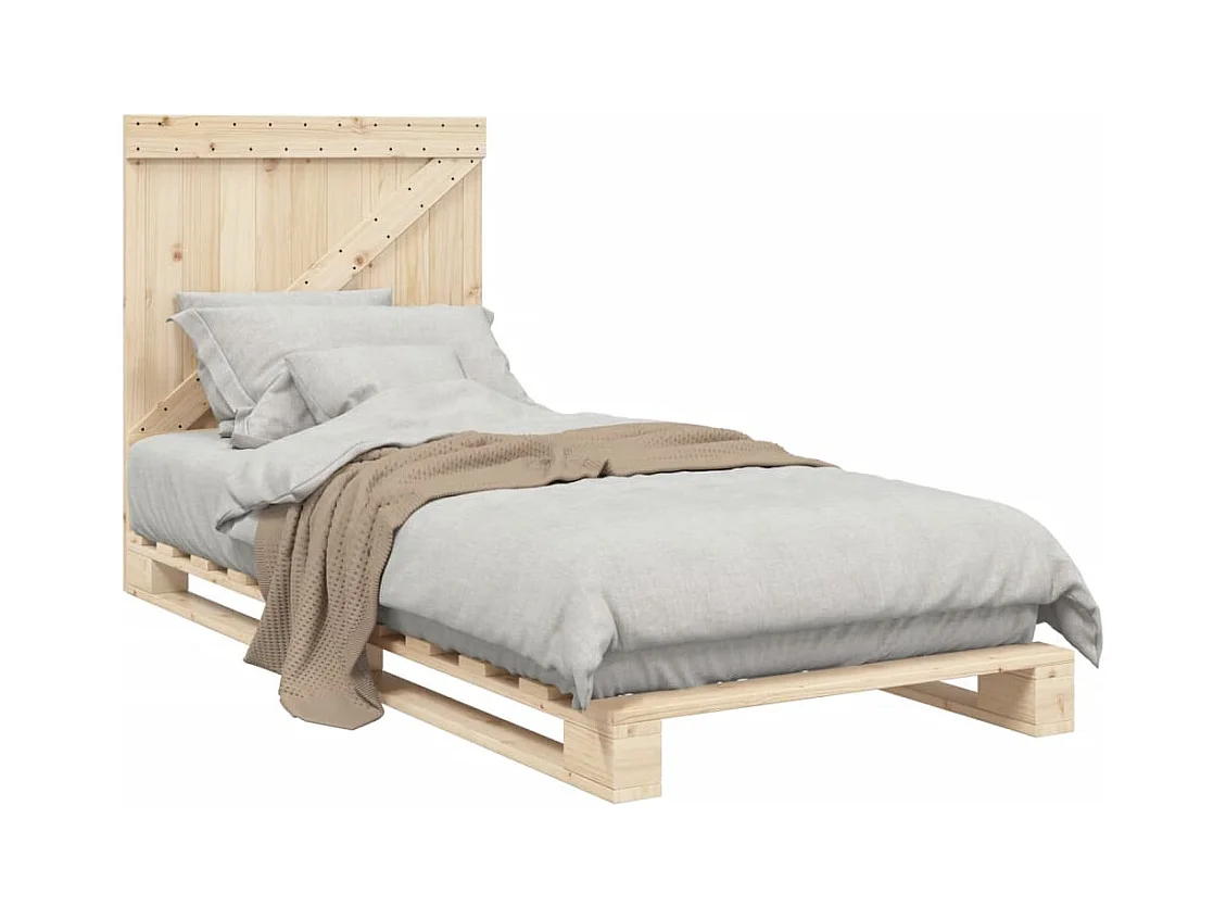 Lit simple + tête de lit 90x200 cm bois de pin massif FR23499