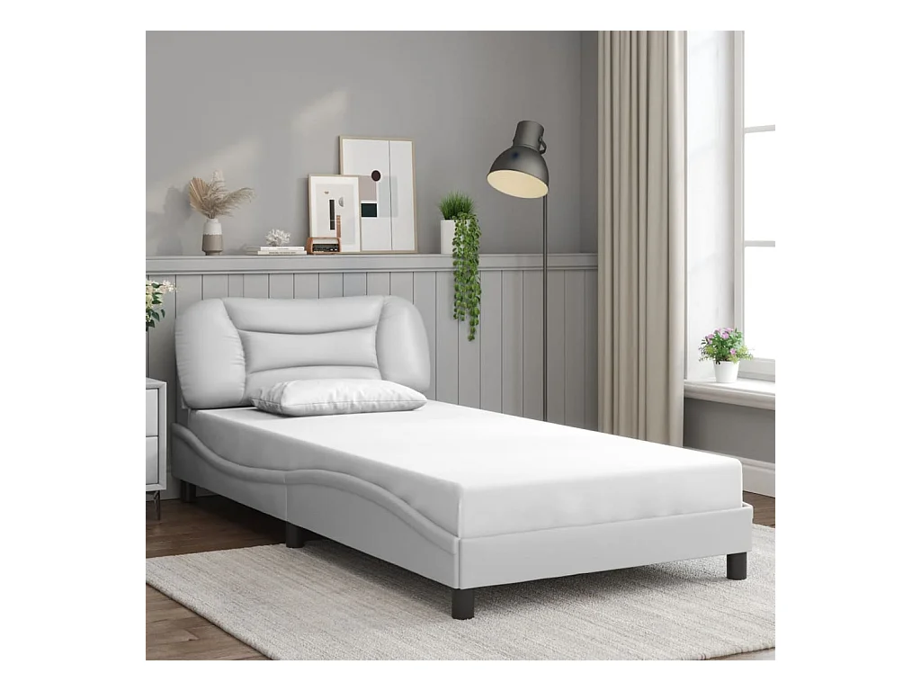 Lit simple + tête de lit Blanc 100x200 cm Similicuir FR20371