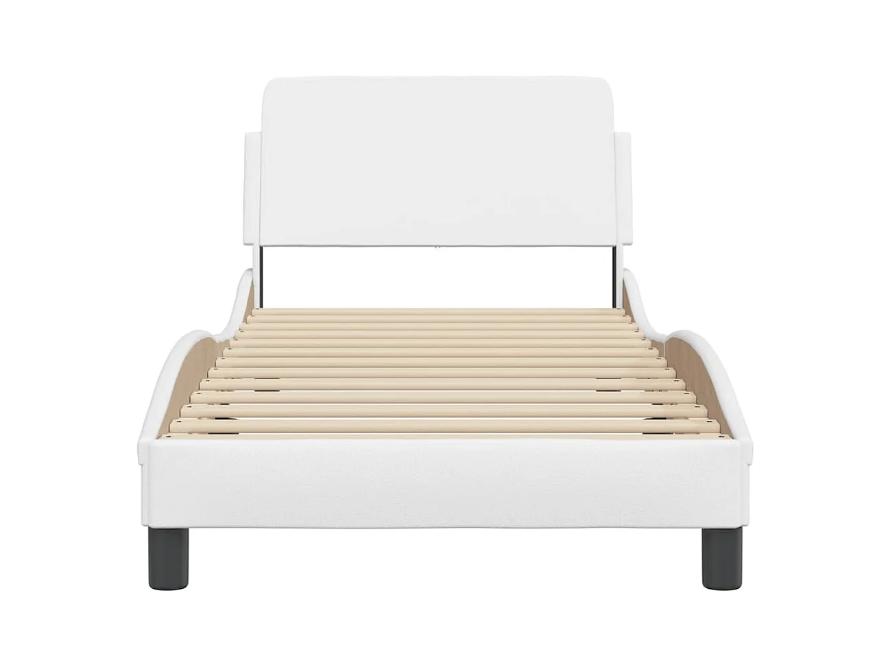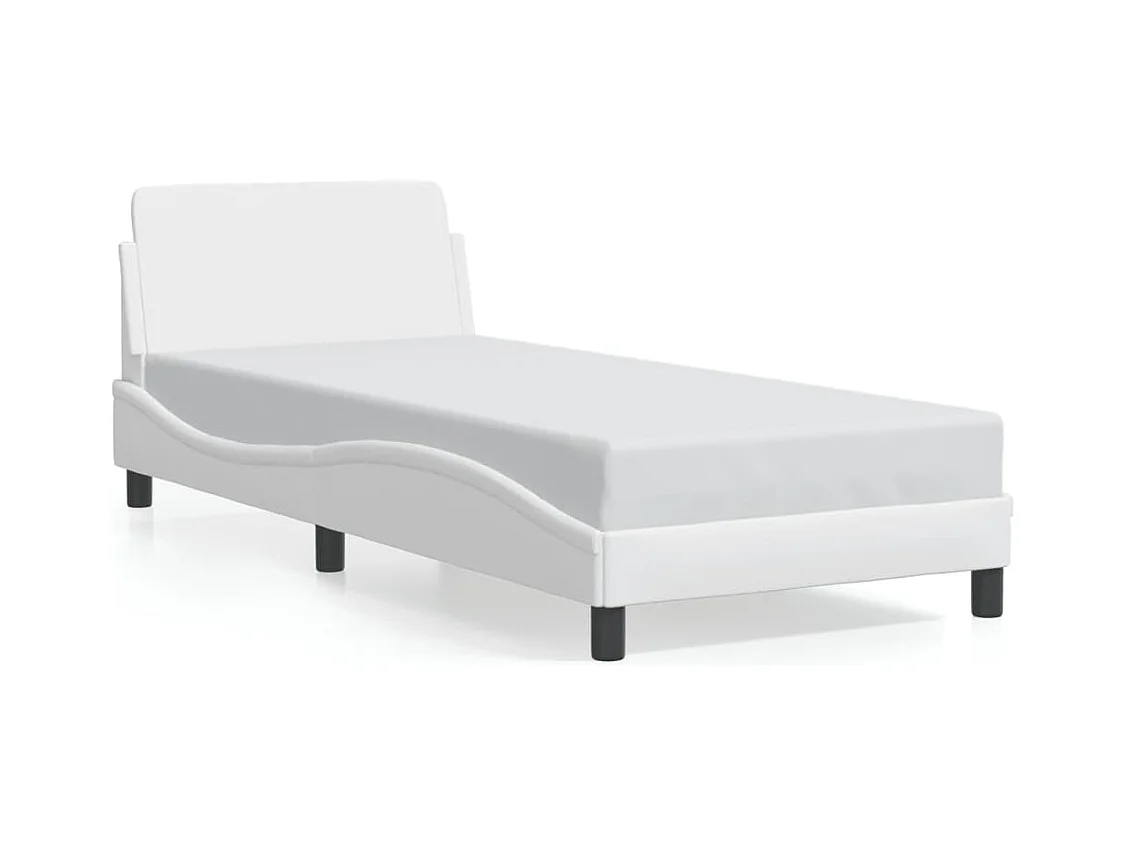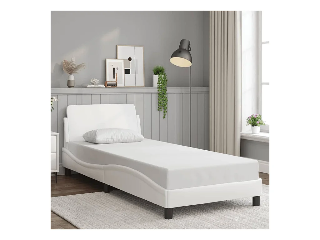 Lit simple + tête de lit Blanc 90x190 cm Similicuir FR91079