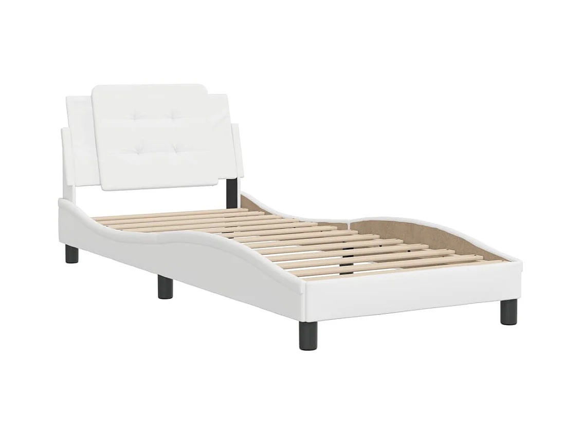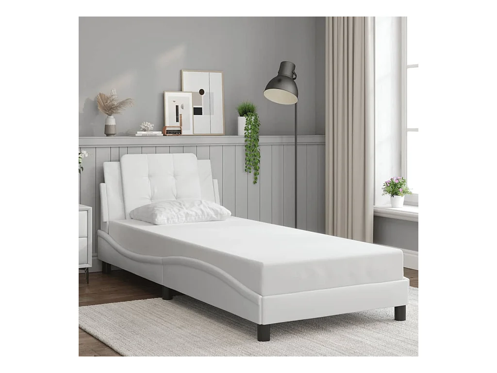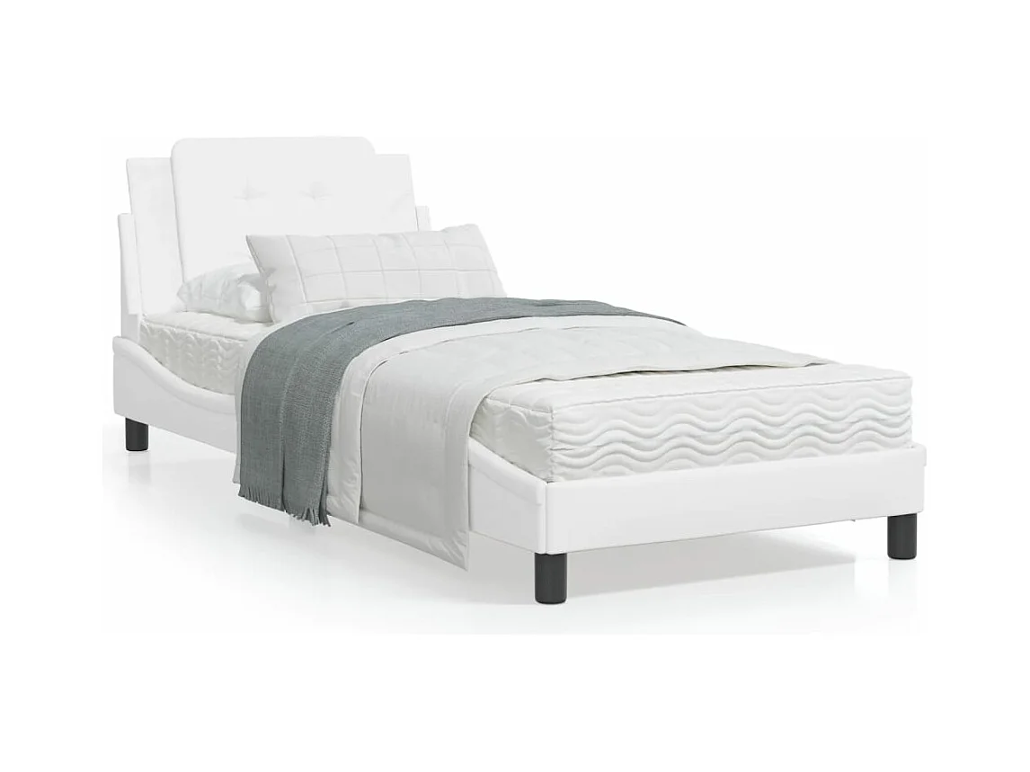 Lit simple + tête de lit Blanc 90x200 cm Similicuir FR30633