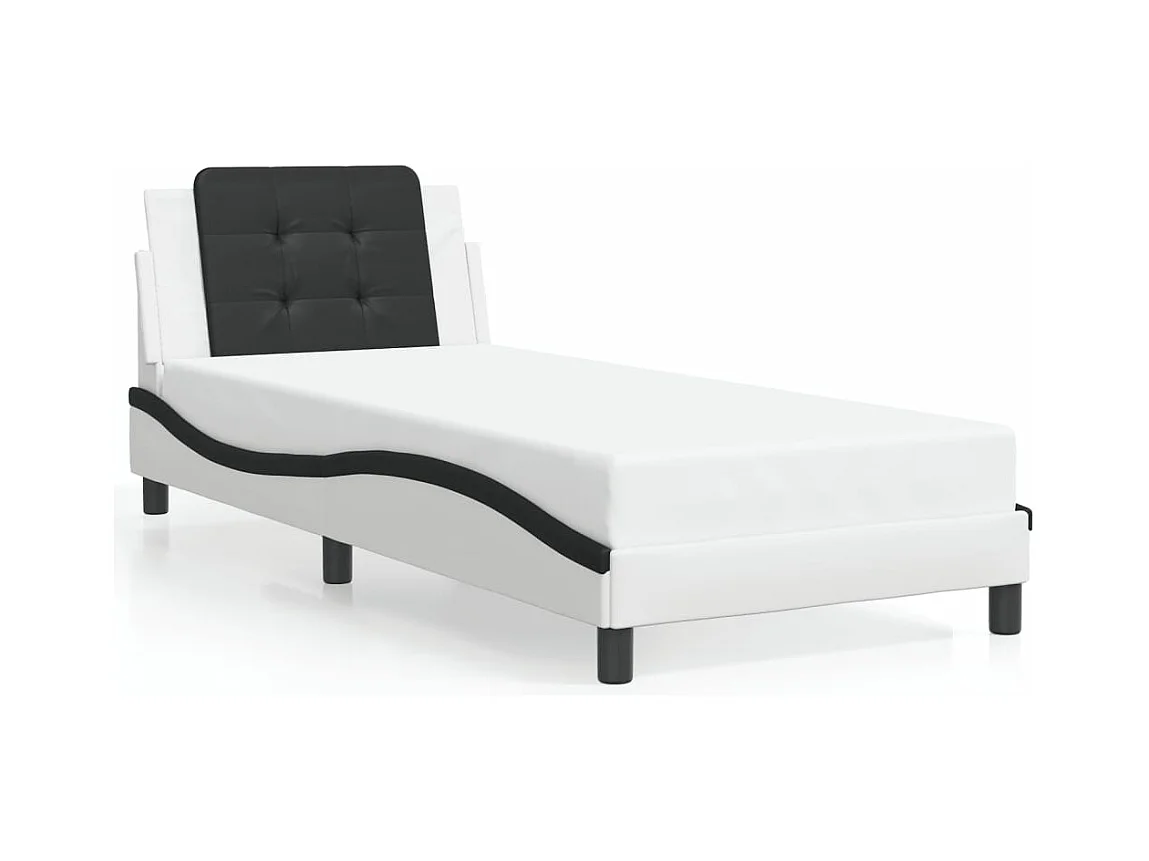 Lit simple + tête de lit blanc et noir 90x200cm similicuir FR19593